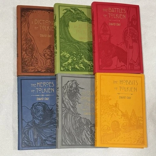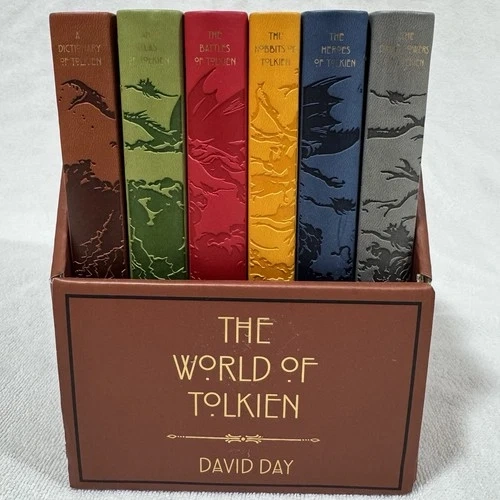 Includes all 6 hardcover books housed in the original slipcase: A Dictionary of Tolkien, An Atlas of Tolkien, The Battles of Tolkien, The Heroes of Tolkien, The Hobbits of Tolkien, The Dark Powers of Tolkien. Published by Thunder Bay Press. Books are in very good condition with clean pages and solid bindings. Slipcase shows light shelf wear and surface marks from storage (see photos). No missing books. Complete set. This is a pre-owned item. Please review all photos carefully as they are part of the description. Smoke-free home.