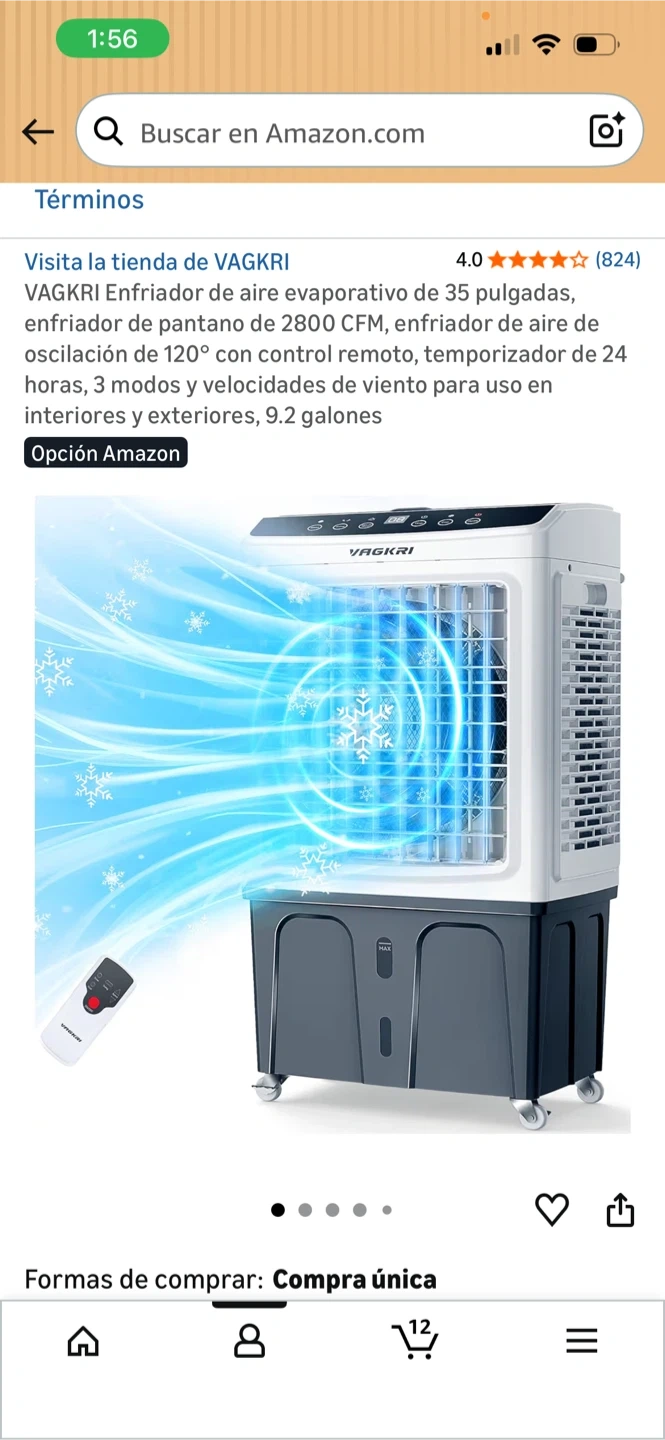 VAGKRI evaporative air cooler with 35-inch fan. It's 2800 CFM and has 120° oscillation with remote control. Includes a 24-hour timer, 3 modes, and speeds for indoor/outdoor use. 9.2-gallon tank capacity.