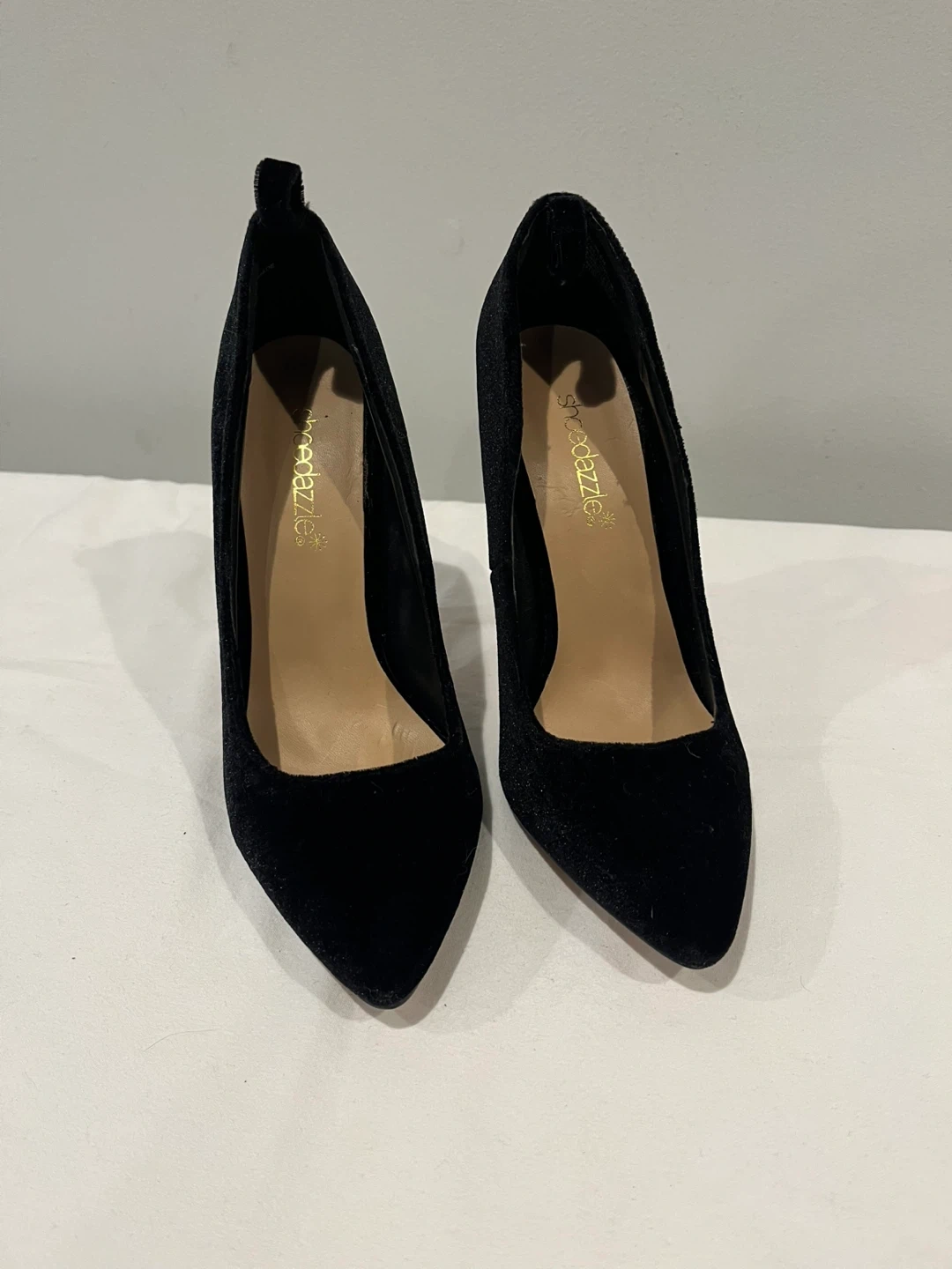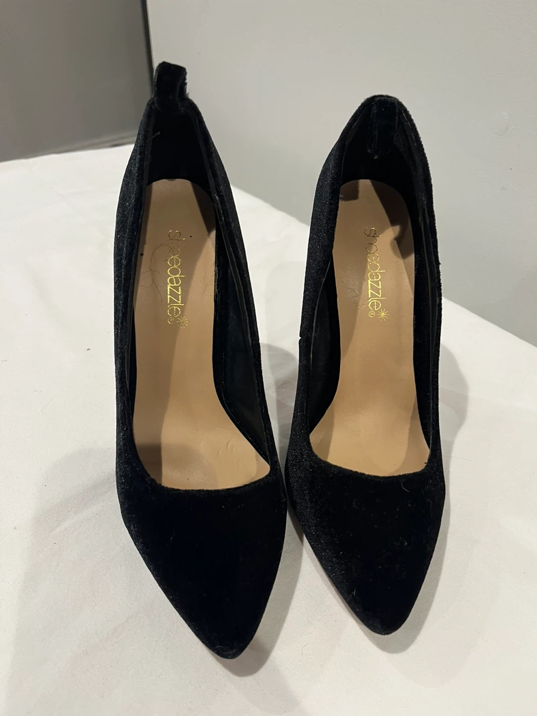 ShoeDazzle Black Velvet Pointed-Toe Heels