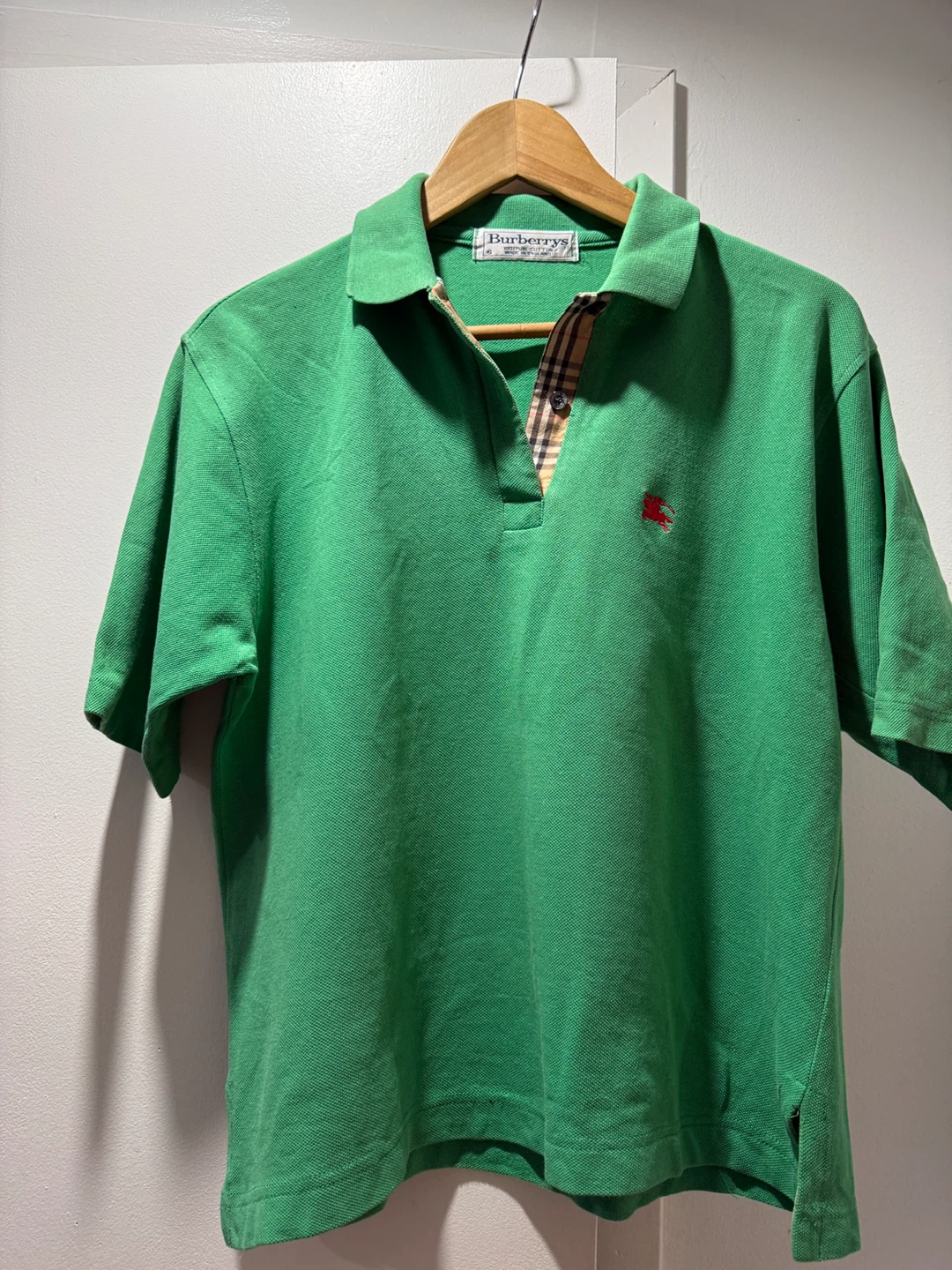 Selling a Burberrys polo shirt in a vibrant green! This size S polo features the iconic Burberry check pattern on the collar lining and a subtle logo on the chest. It's made of comfortable material, perfect for casual wear. Please take a look at the pictures for the exact condition