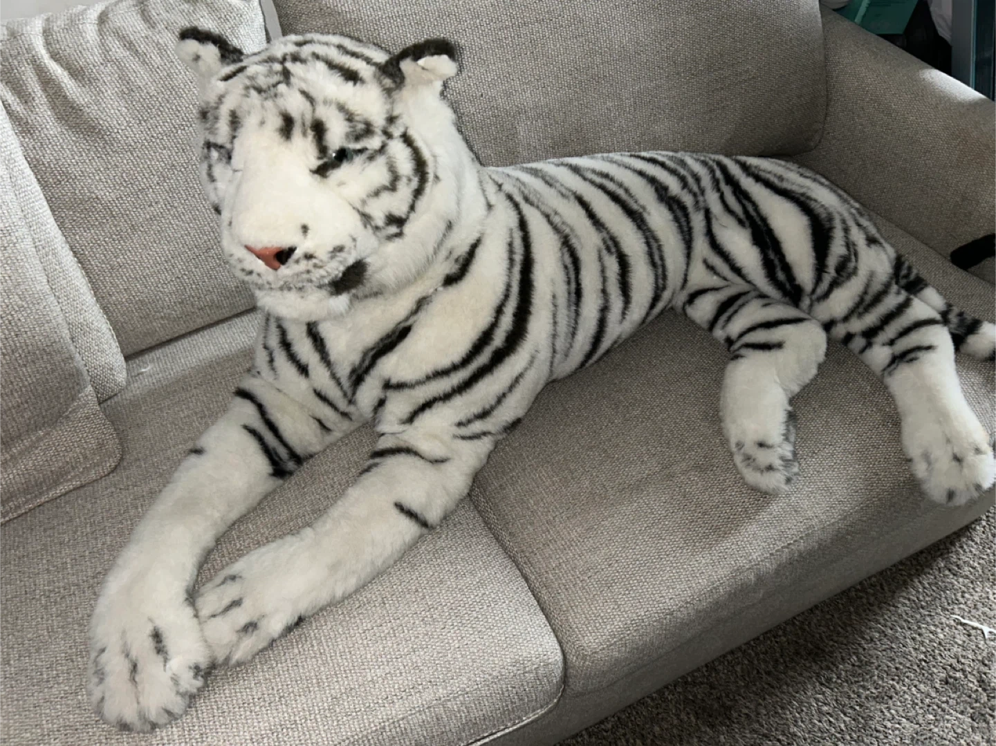 60Selling a Ty white tiger plush. It's in great condition and ready for a new home! The plush has black stripes and a soft, cuddly feel. Item No. GT6037