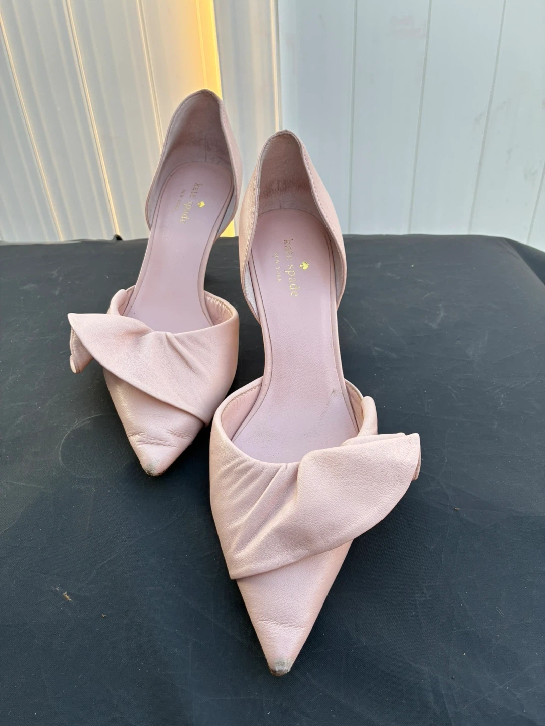 Selling a pair of Kate Spade heels in a lovely pink color! They are a size 9M and have a cute bow detail. Perfect for adding a touch of elegance to any outfit