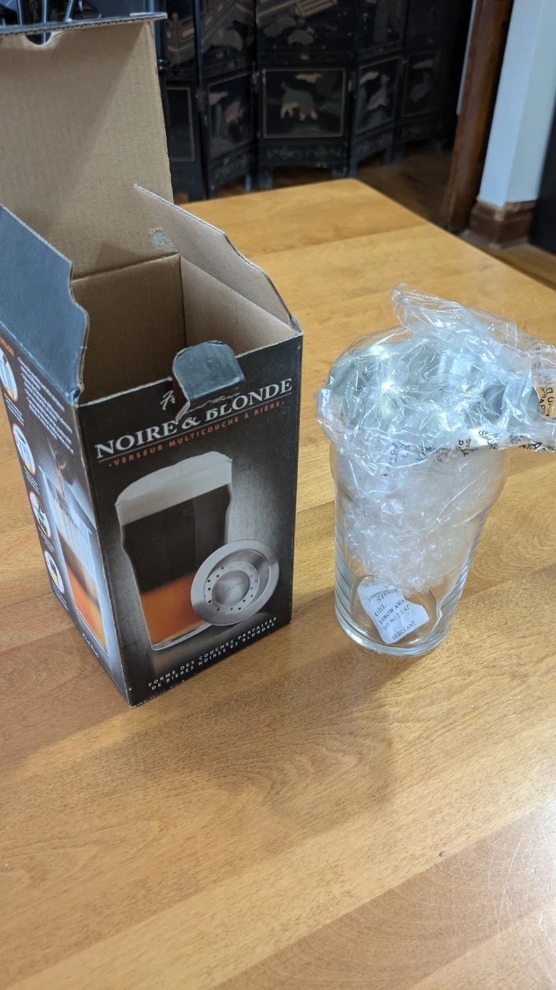 Create perfect layers in beer with this multi-layer beer pourer. It's designed to help you achieve the ideal stout and blonde beer presentation. Includes the pourer and original box.