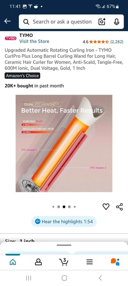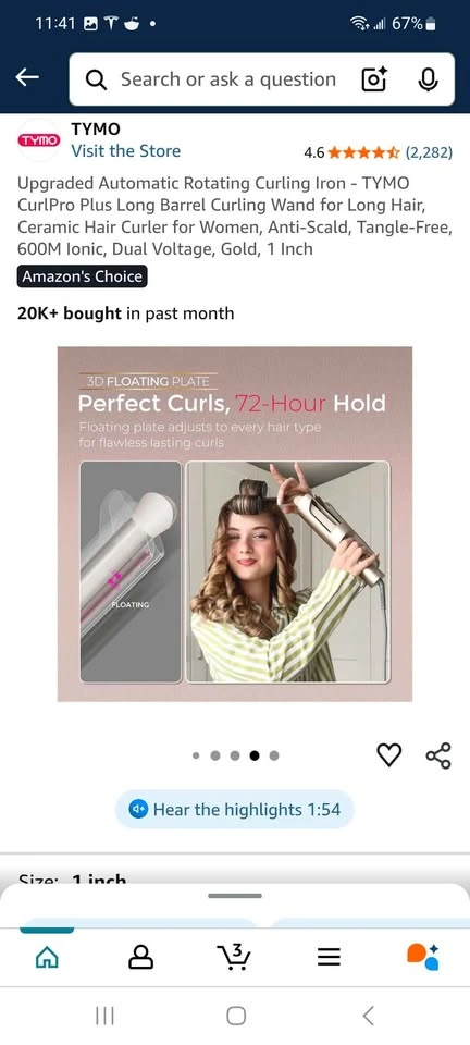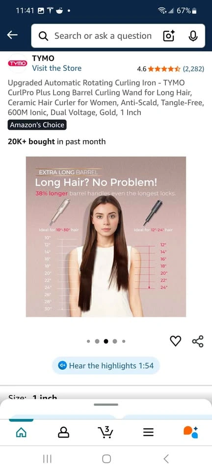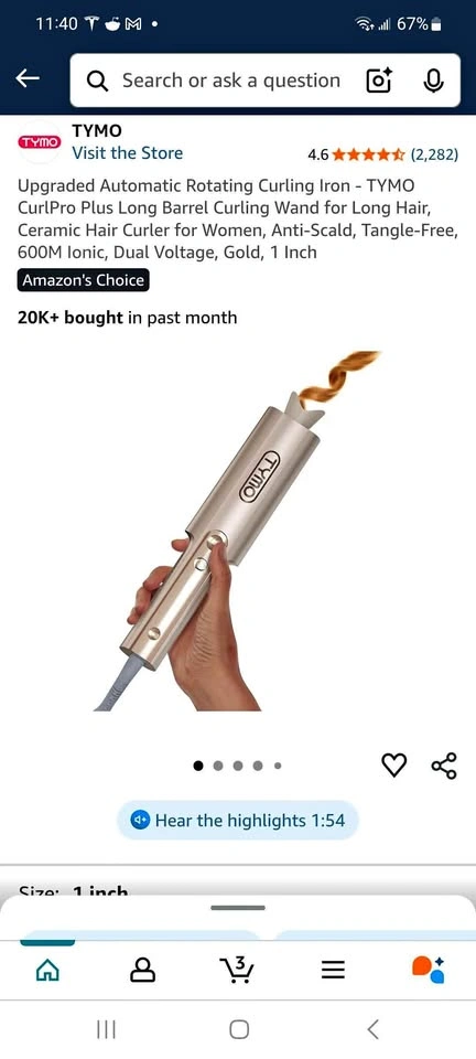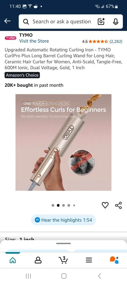 0Upgraded Automatic Rotating Curling Iron - TYMO CurlPro Plus Long Barrel Curling Wand for Long Hair, Ceramic Hair Curler for Women, Anti-Scald, Tangle-Free, 600M Ionic, Dual Voltage, Gold, 1 Inch. Brand New. Pickup near Fox Valley Mall Aurora.