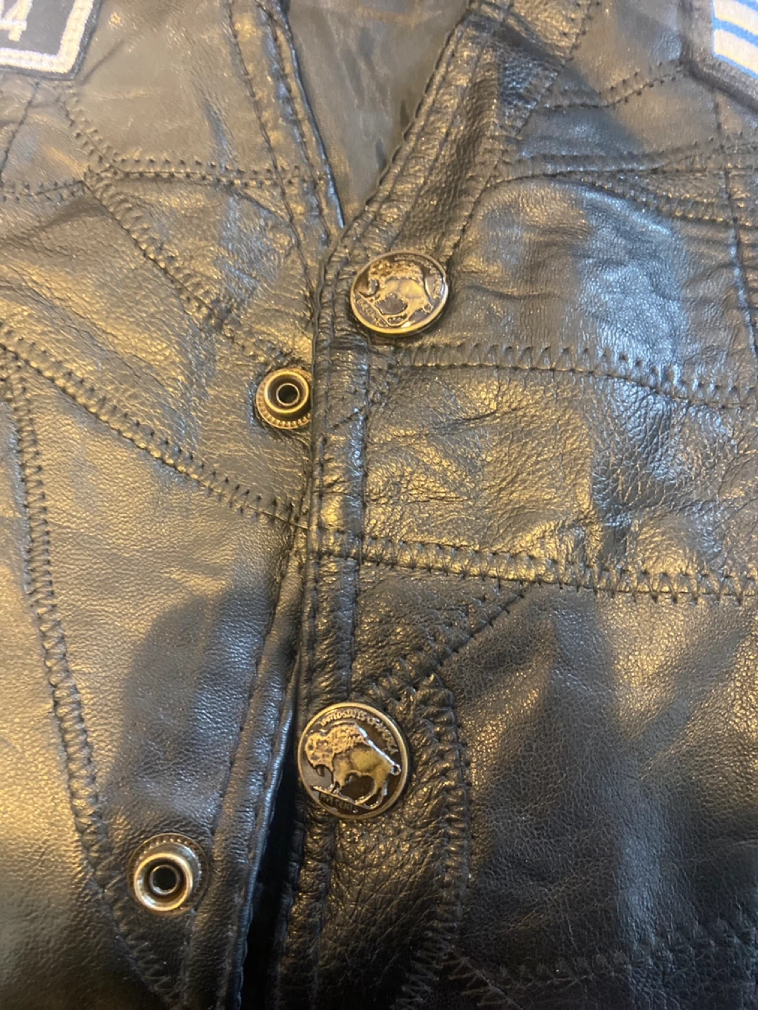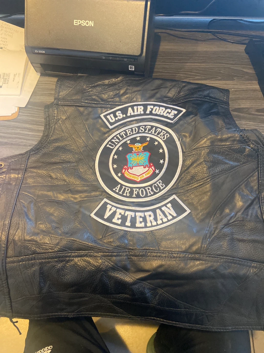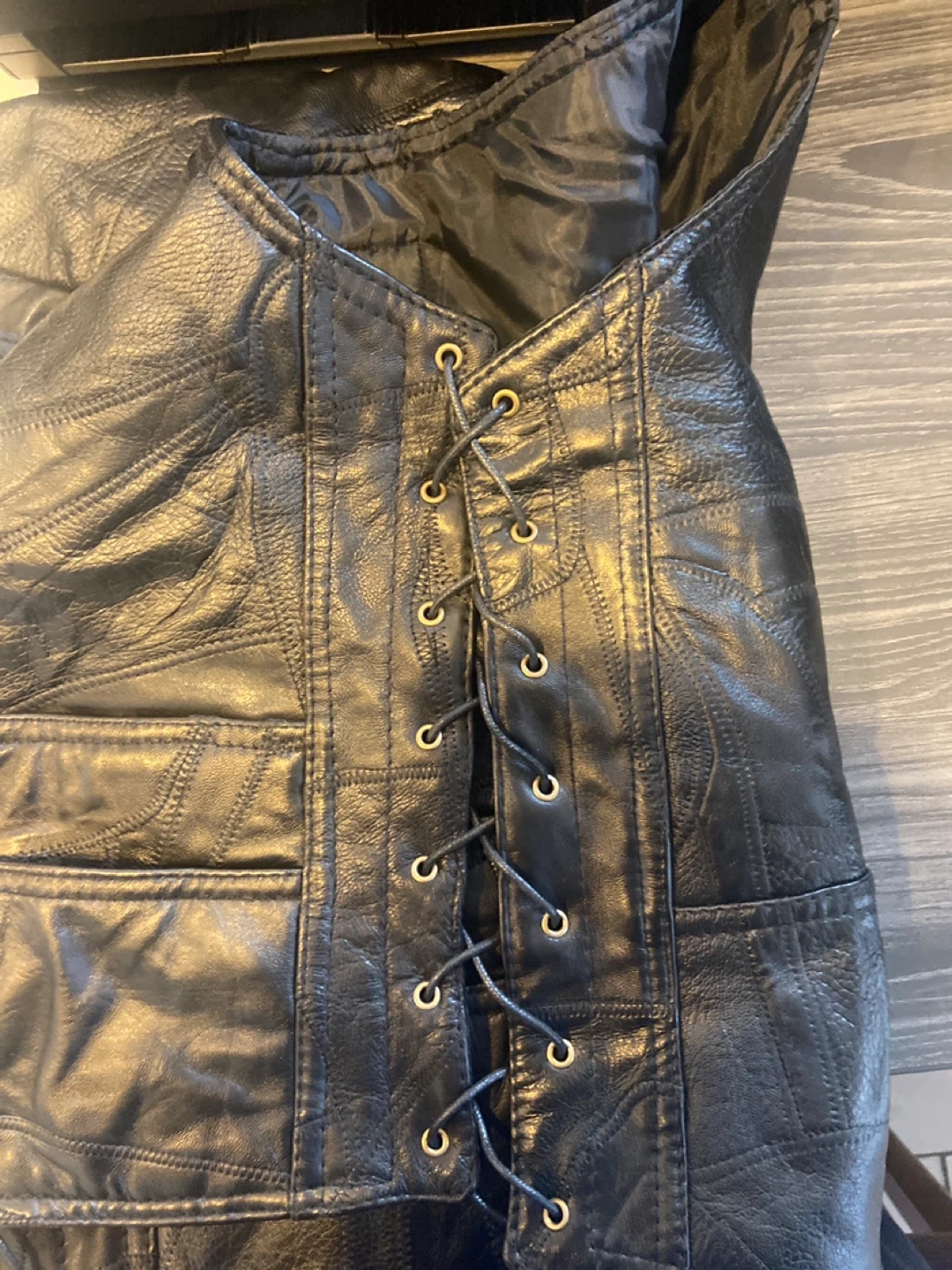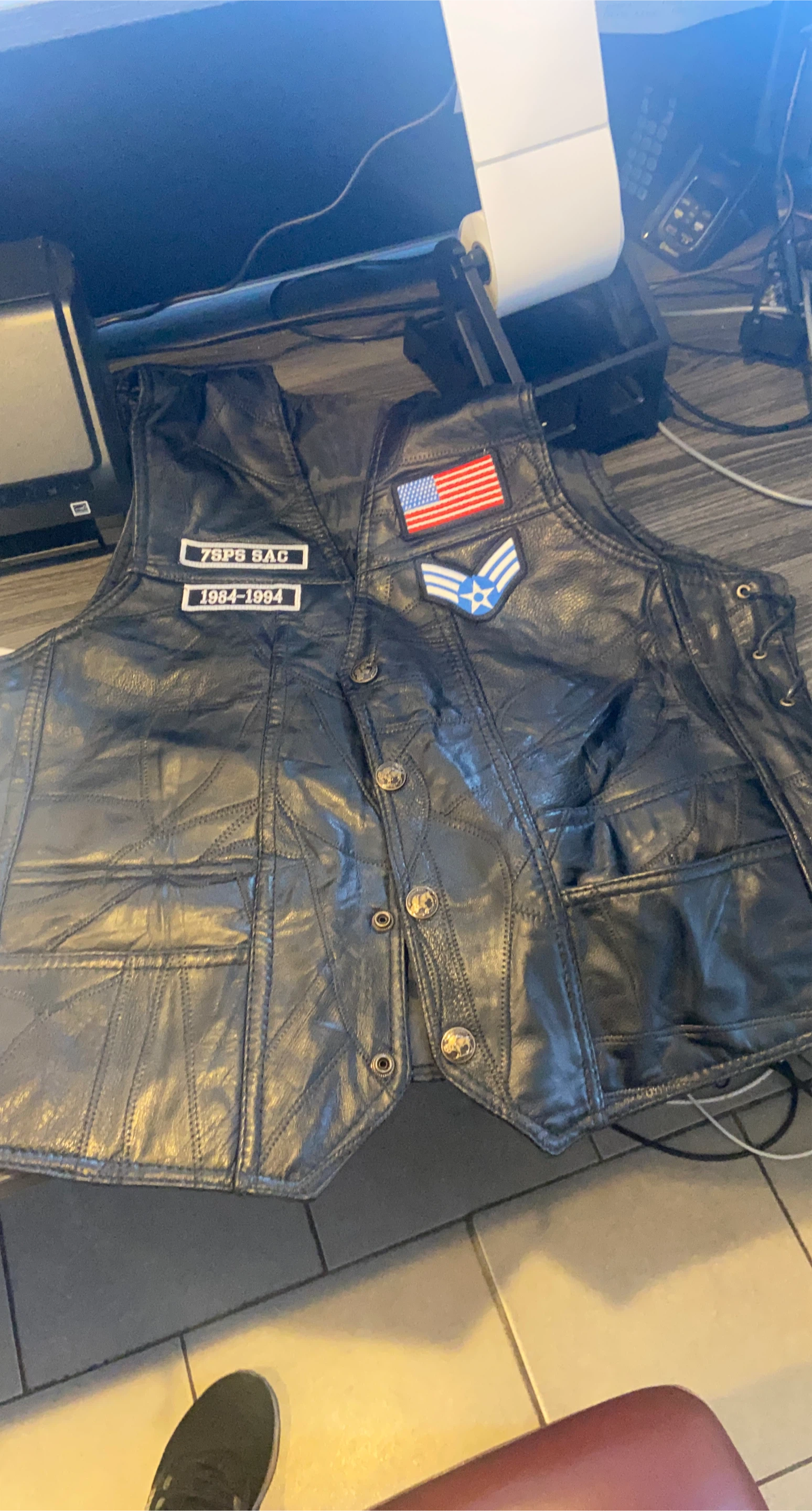 62Selling a gently used U.S. Air Force leather vest. It features a prominent U.S. Air Force emblem on the back, along with patches and other amazing details. The vest has a button-up front with unique buffalo-design buttons and lace-up sides. A great piece of fashion