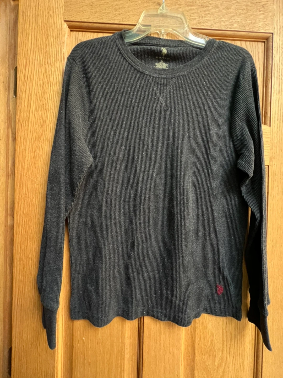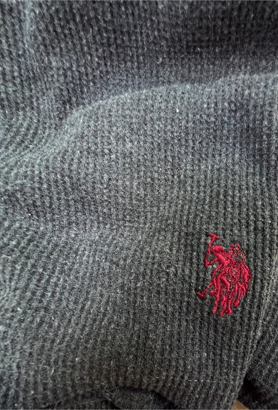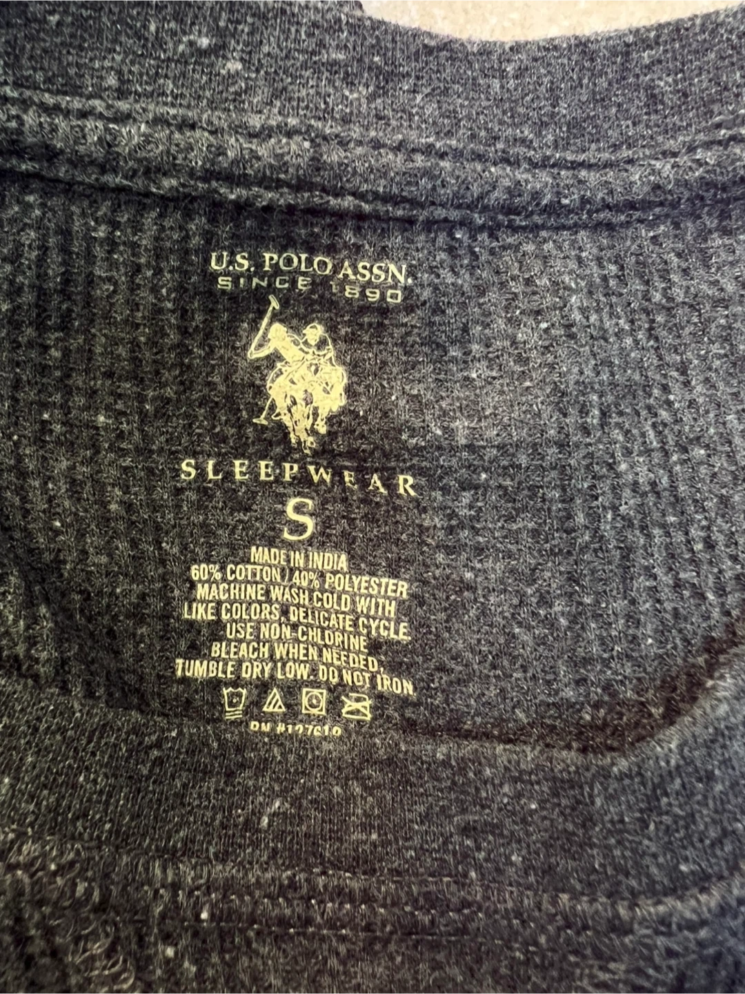 U.S. Polo Assn. Men's Grey Long Sleeve Waffle Shirt Size Small. 60% Cotton and 40% Polyester. Some pilling.