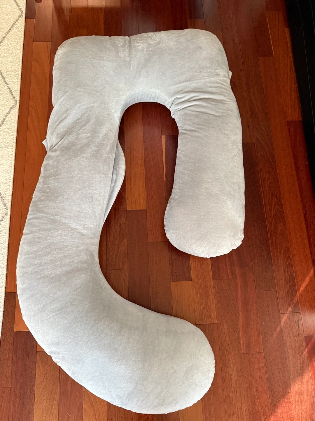 This full-body U-shaped pregnancy pillow is perfect for providing support and comfort during pregnancy. It's in great condition and ready to help someone get a good night's sleep! The pillow is designed to contour to the shape of your body, providing support where you need it most