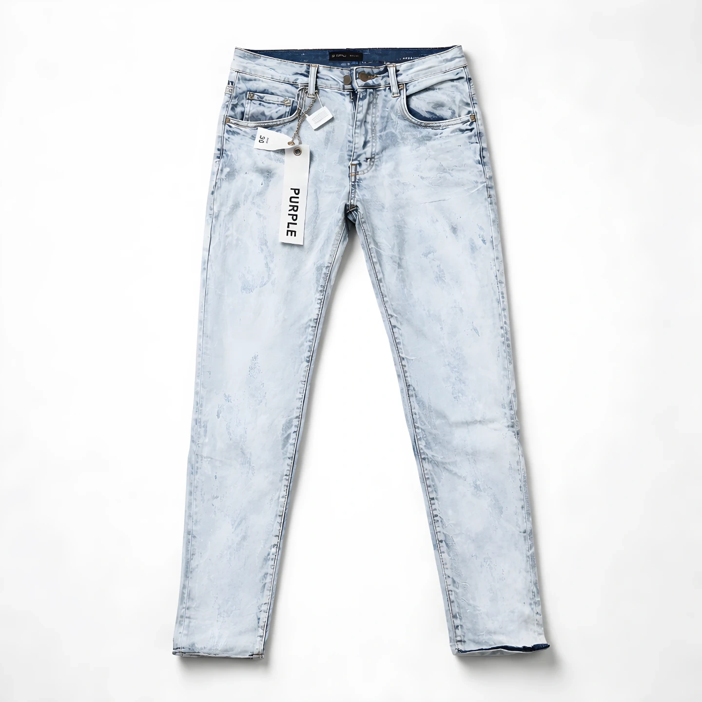 Purple Brand jeans in a light wash with a distressed finish. Features a classic five-pocket design. Made with denim. Tag is still attached!