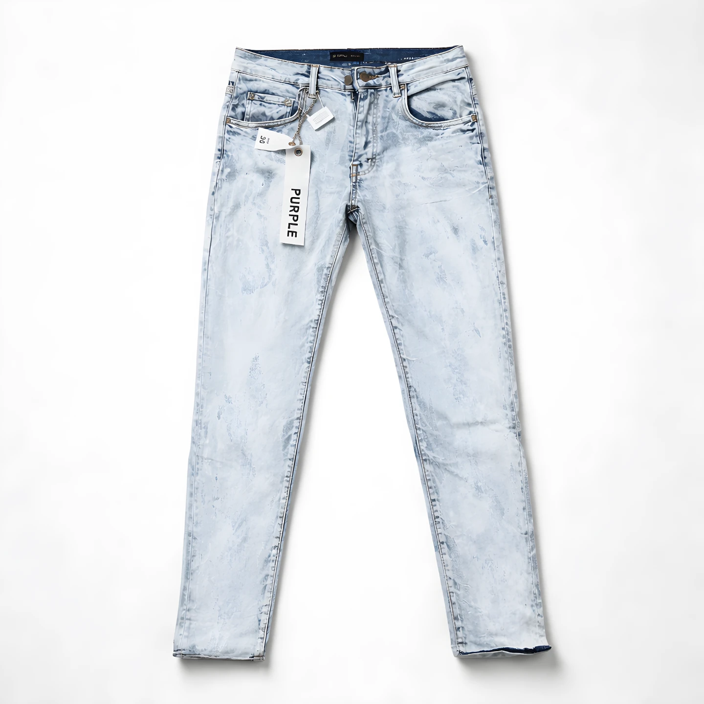 Purple Brand jeans in a light wash with a distressed finish. Features a classic five-pocket design. Made with denim. Tag is still attached!