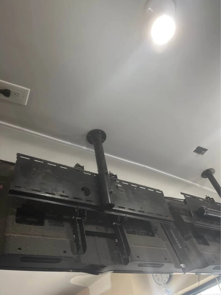 Adjustable ceiling or wall TV mount bracket, tilt and rotatable. Supports 42-80 inch TVs with an 80Kg/176 pound capacity. Fits flat and vaulted ceilings. Let me know if you're interested!