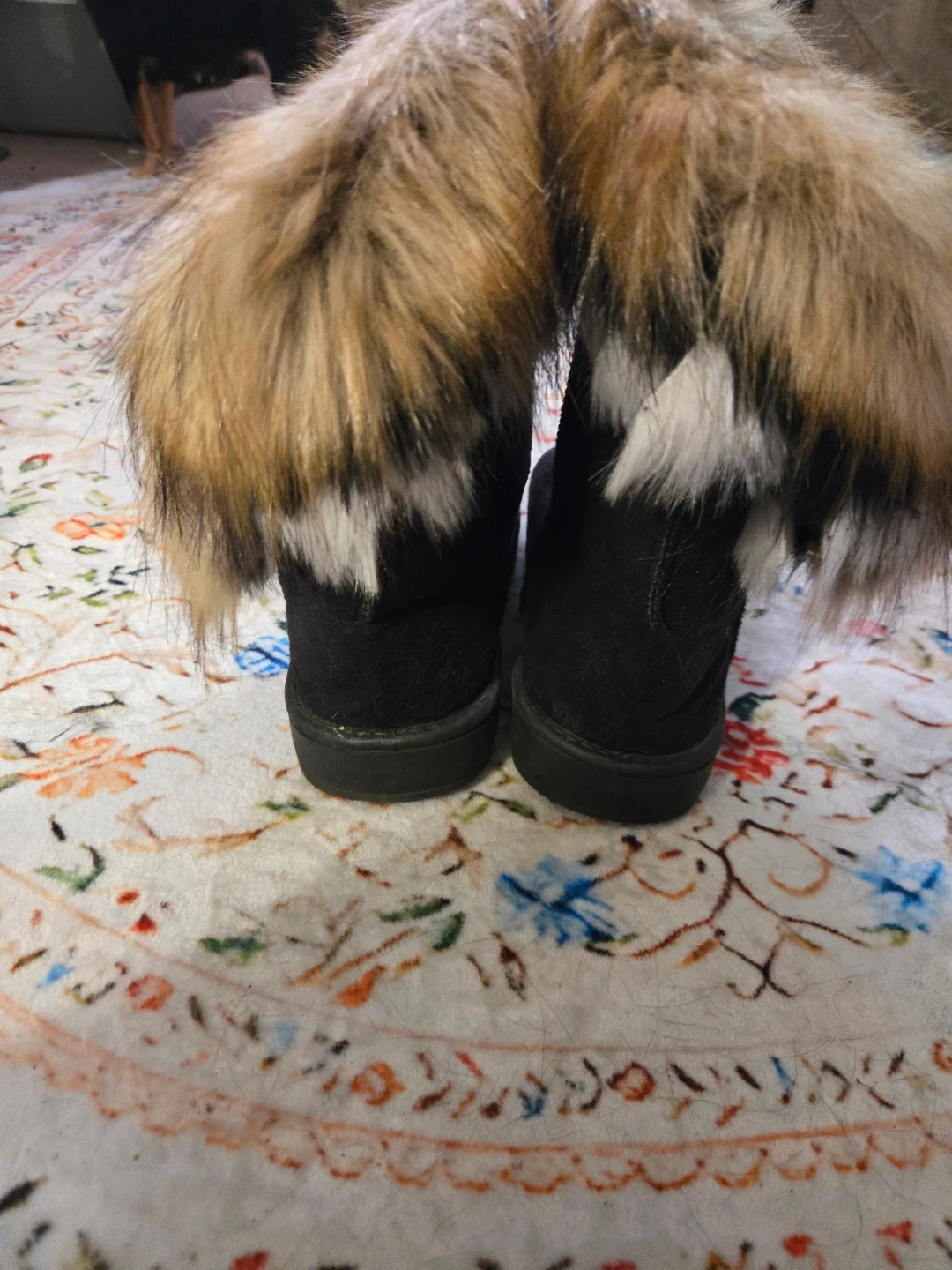 Black Faux Fur Trim Winter Boots