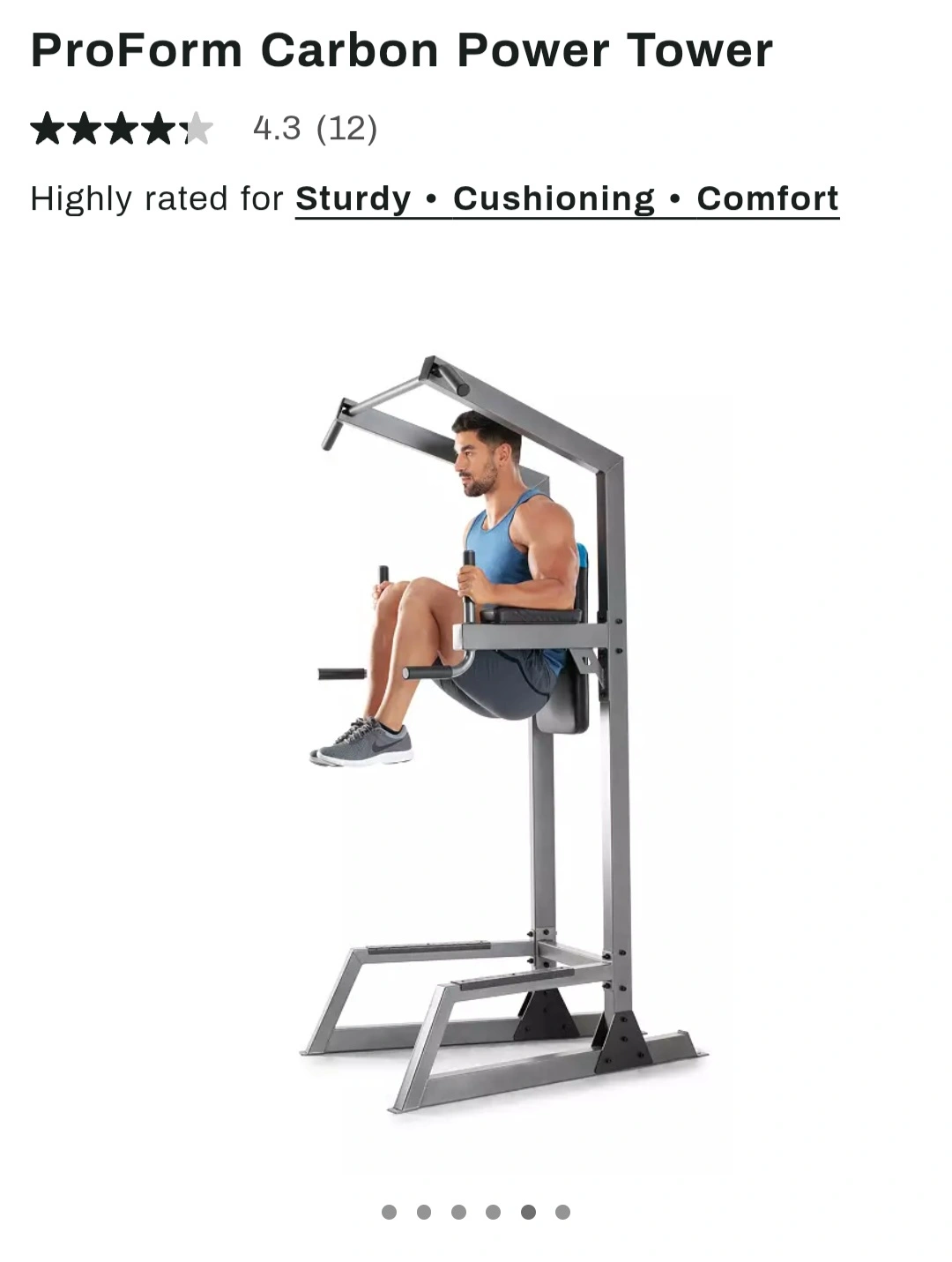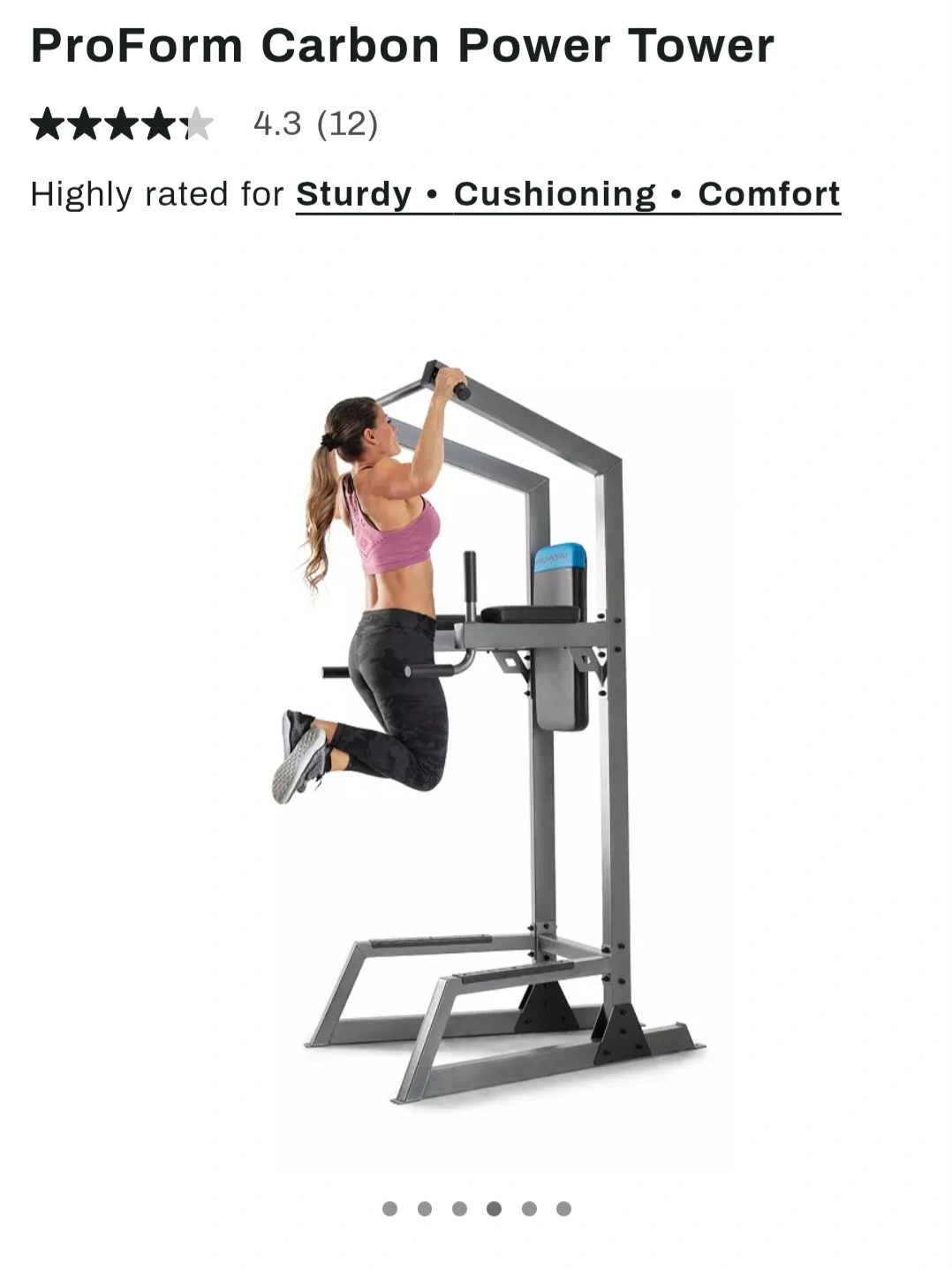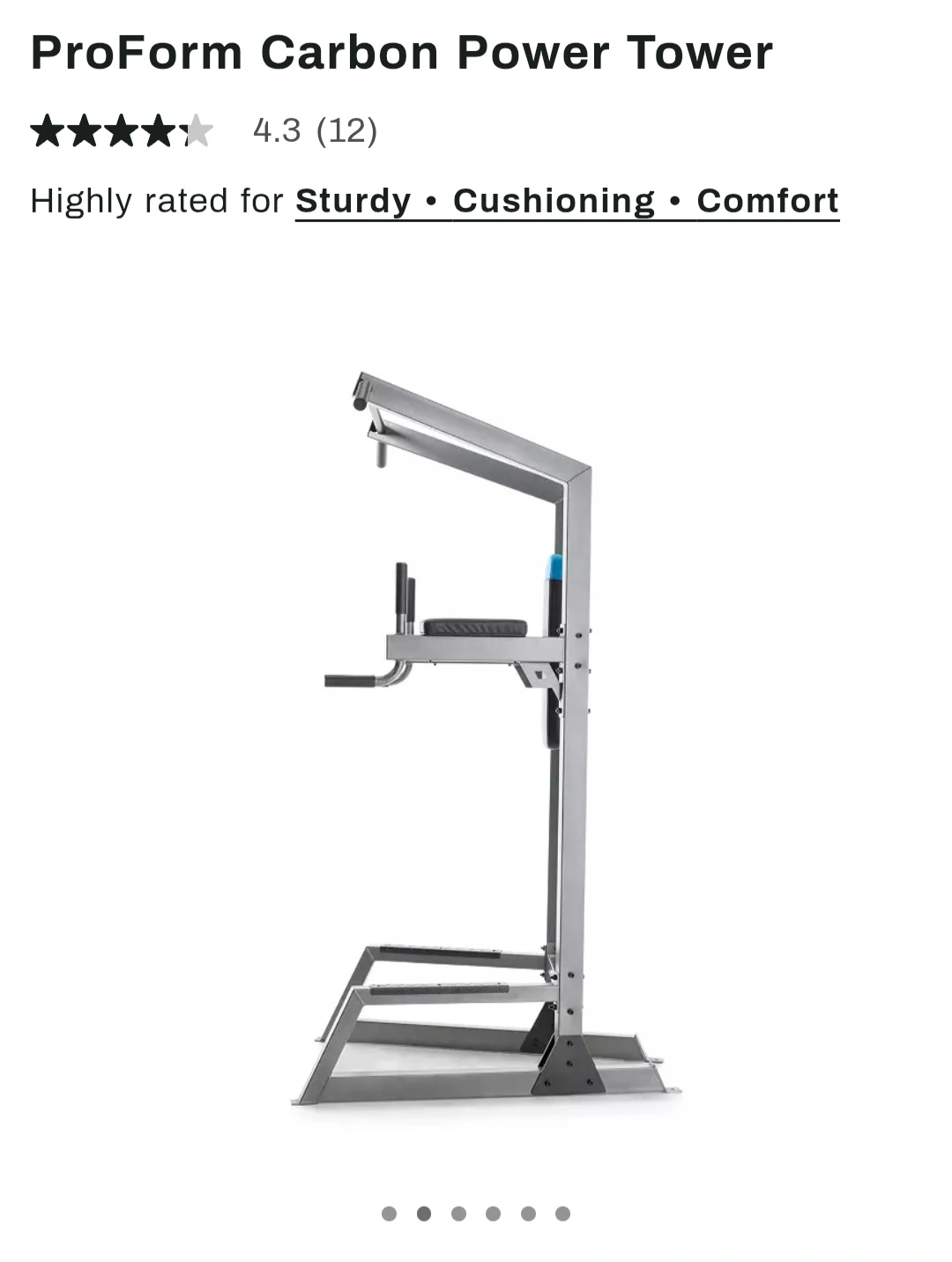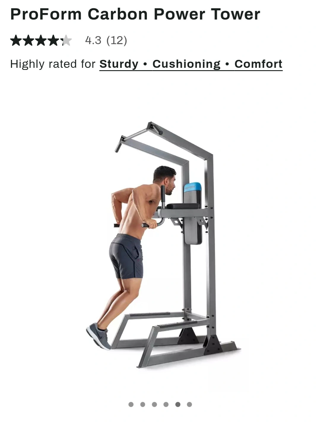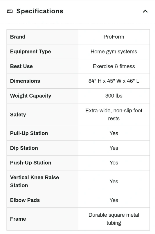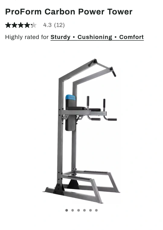 Great for home workouts. Pull-up bar, dip station, and knee raise station. Durable and sturdy construction. Compact design.