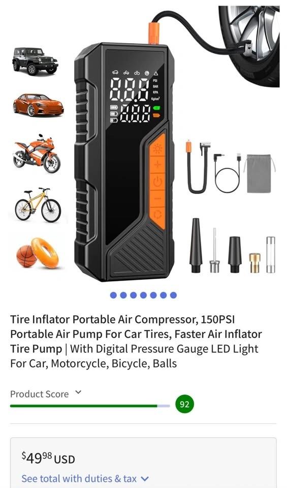 π Portable Tire Inflator + Power Bank | 150 PSI Digital Air Pump