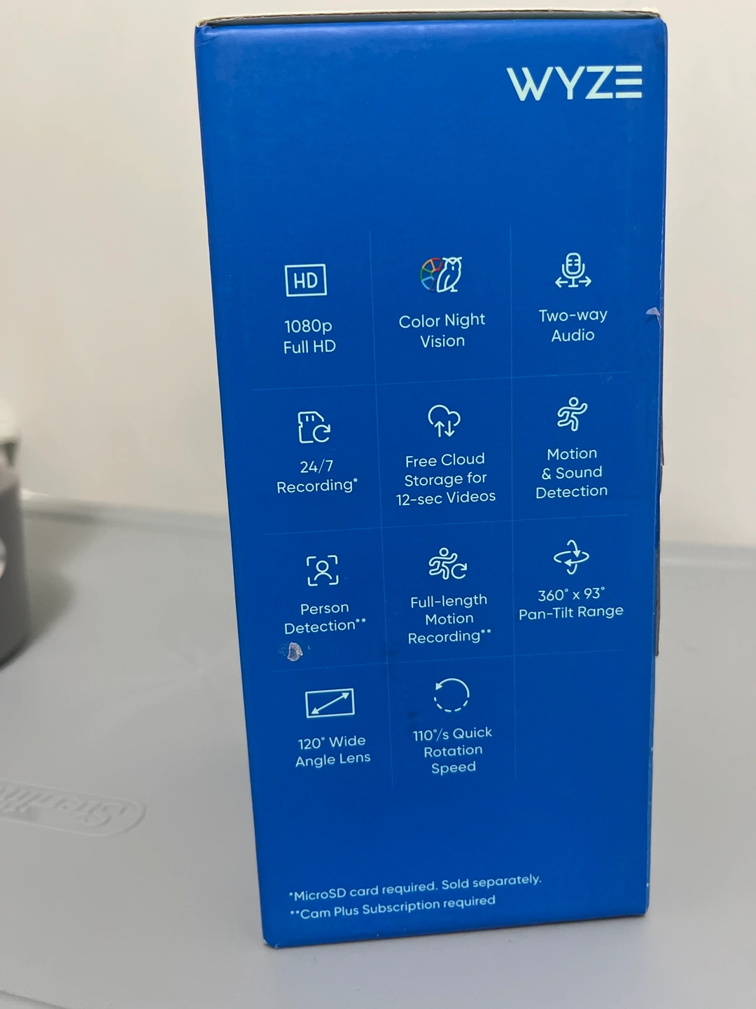 Brand new - unopened. Wyze Cam Pan V2 with Color Night Vision. Camera is new in box. Features include 1080p full HD, color night vision, two-way audio, 24/7 recording, free cloud storage, motion & sound detection, person detection, full-length motion recording, 360 x 93 pan-tilt range, 120 degree wide angle lens, 110 second quick rotation speed.