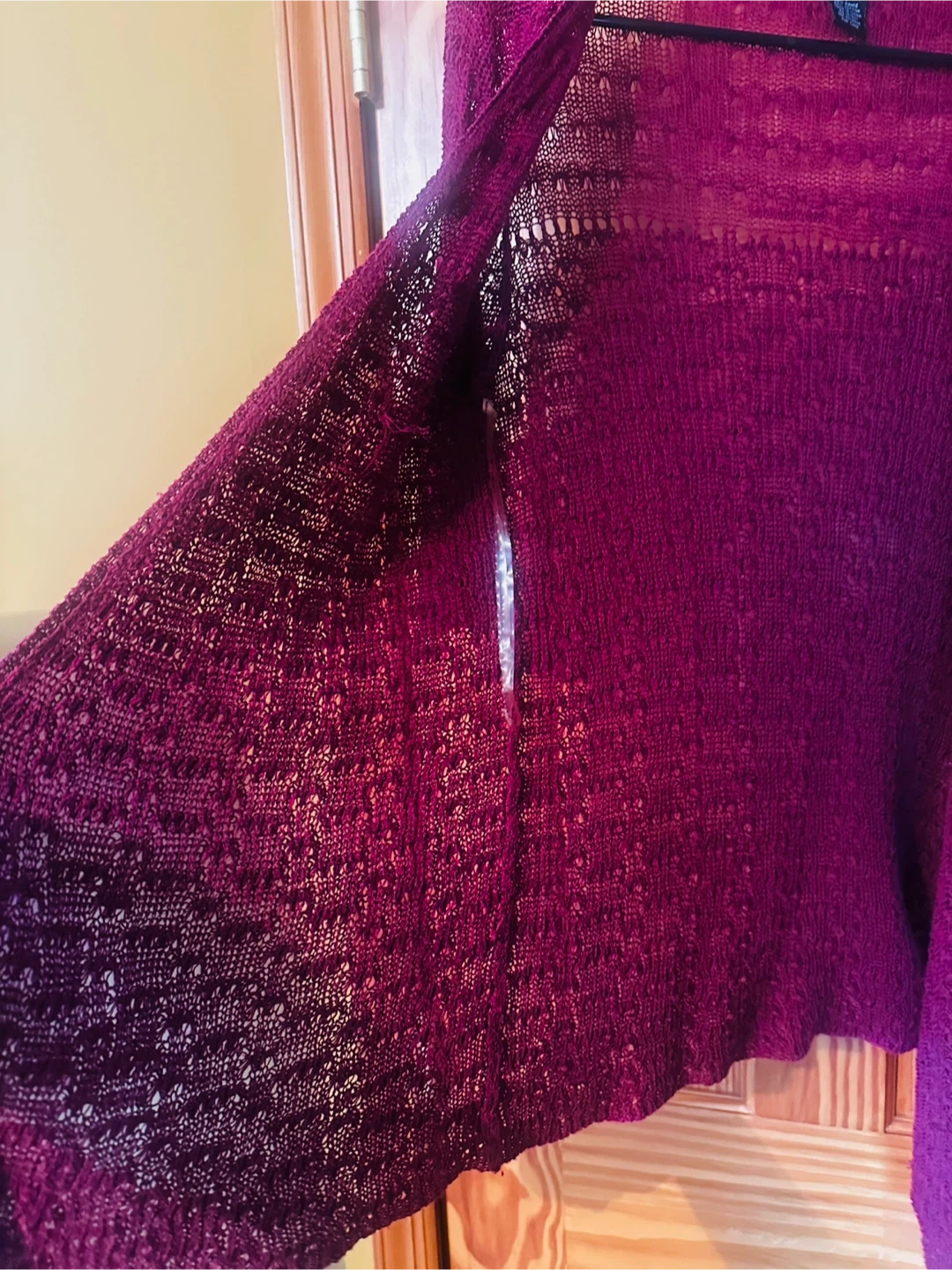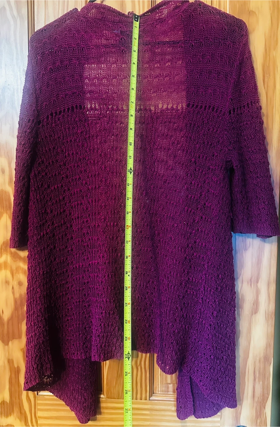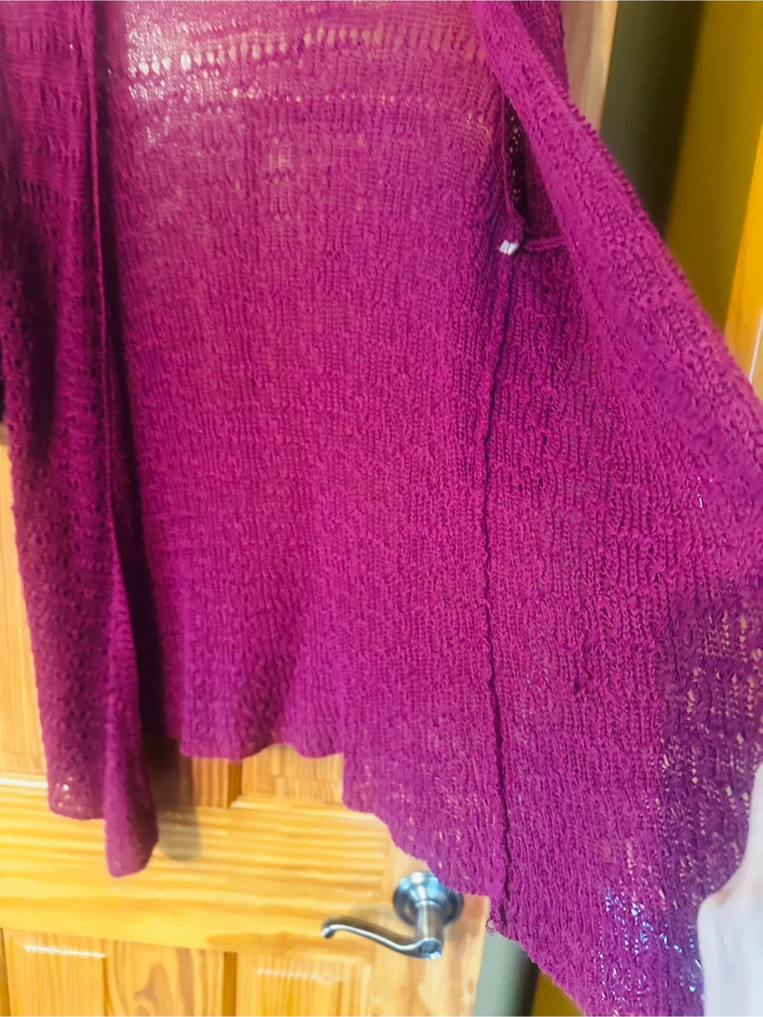 This Grace cardigan sweater is a size medium. It's made of 56% ramie and 44% cotton. The knit has an open, textured pattern.