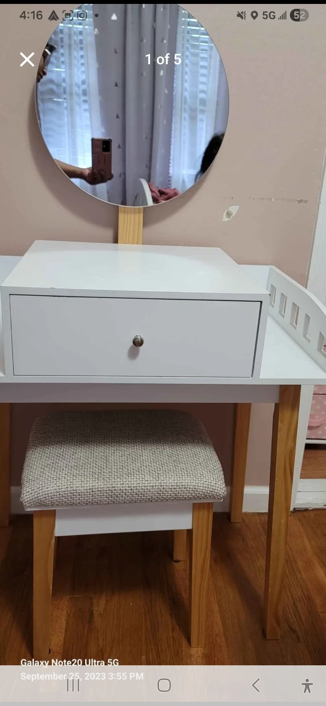 White Kids Vanity Table Top Organizer with Drawer