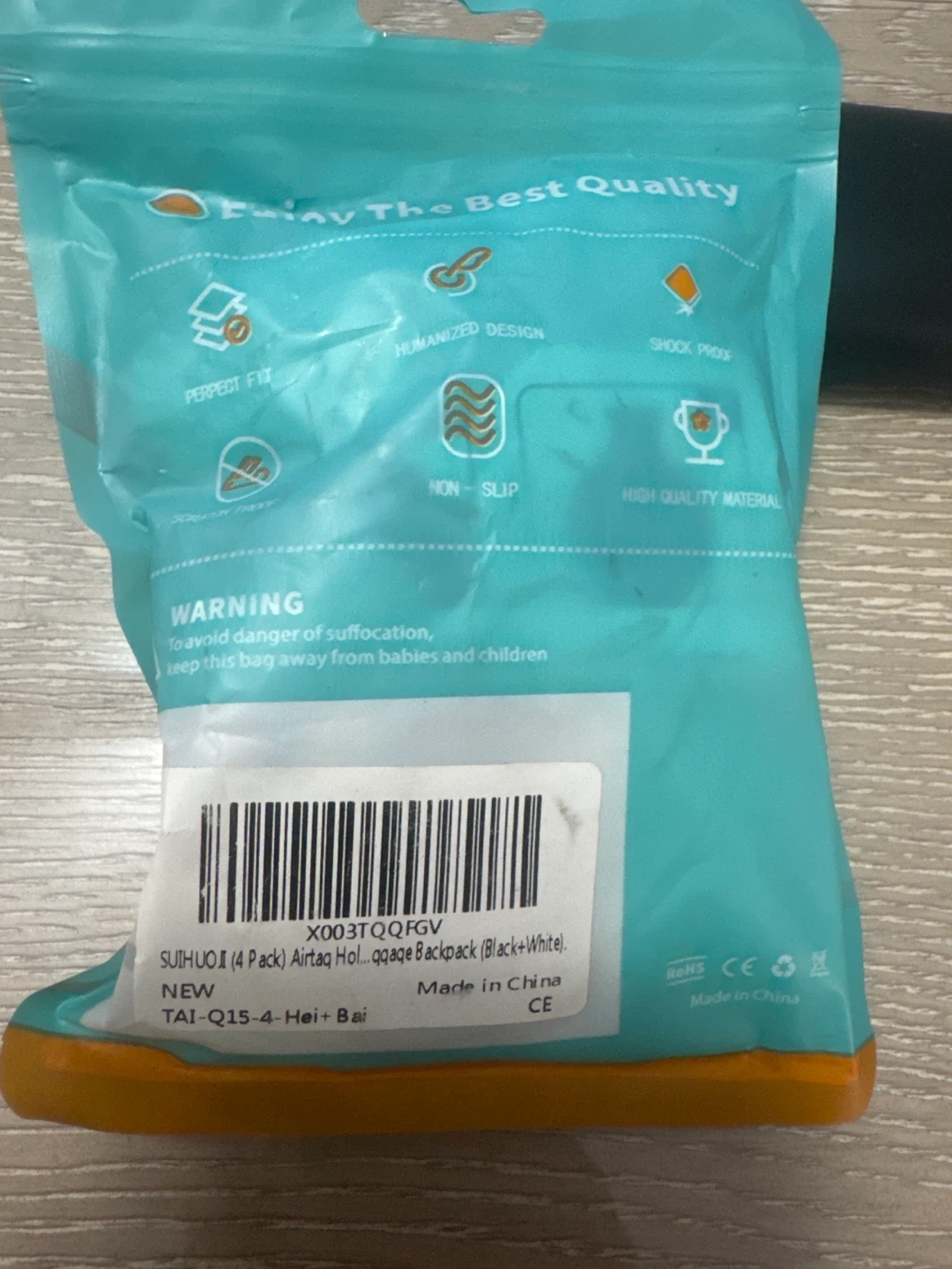 I'm selling a new pack of SUIHUII AirTag holders. They come with 4 in the pack, in black and white colors. They are designed for luggage, backpacks, and more. Enjoy the best quality with a perfect fit, humanized design, and shock-proof protection. They are also non-slip and made with high-quality material