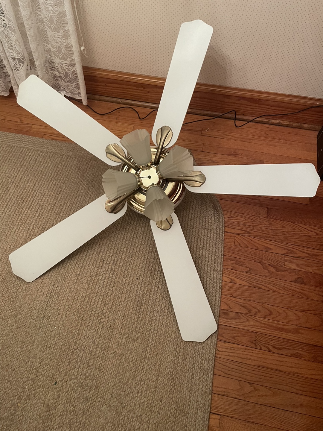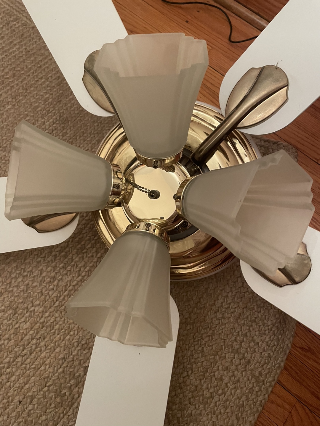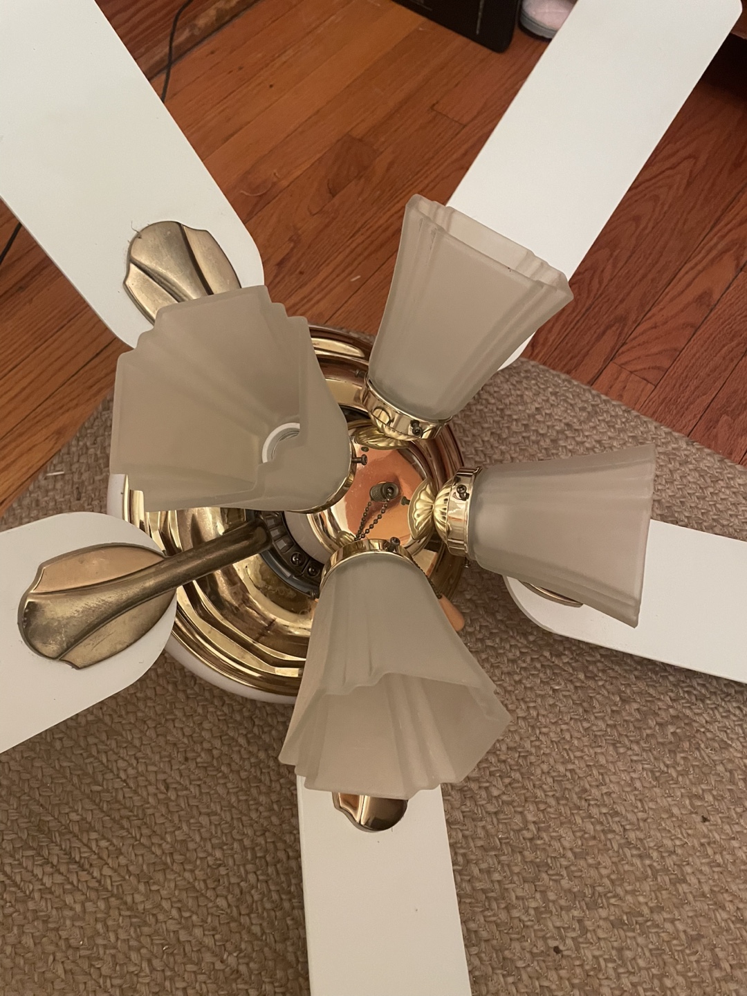 1 / 31 / 3Buy & SellWhite Ceiling Fan with Brass Accents and Frosted Glass ShadesWhite Ceiling Fan with Brass Accents and Frosted Glass Shades$20Five-blade ceiling fan. White 21”blades, brass accents, frosted glass shades. Pull chain. Pre-owned.ConditionLike newWHERE TO MEETElmwood ParkView MapSELLERverifiedJuliaElmwood Park912 reviews1 chats·0 favorites·12 viewsSEND CHAT TO SELLERHi Julia! I’m interested in your listing.Hi Julia! I’m interested in your listing.Get the Karrot app to chatSign In to chat