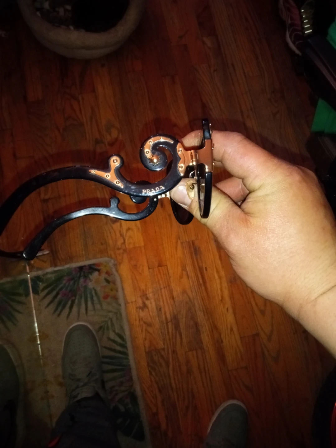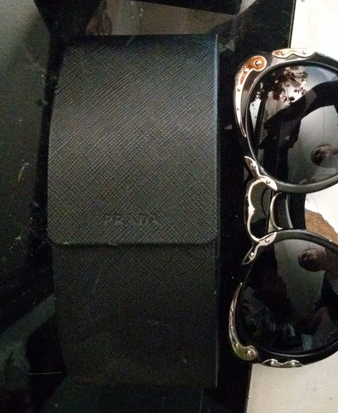 These are black Prada Minimal Baroque sunglasses. They come with their original case. Designed with unique, ornate details.