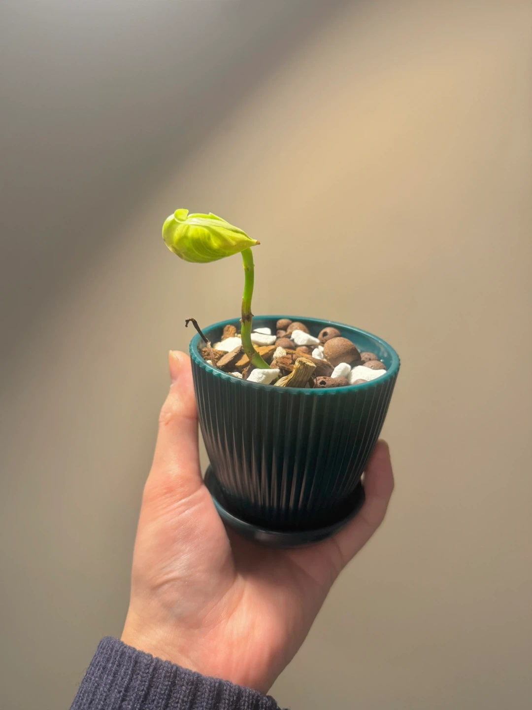 A little Philodendron melanochrysum, rare plant! It comes in a nice green pot with a matching saucer. It grew out from a mid node cutting of the mother plant (last photo). Pick up from queens elmhurst