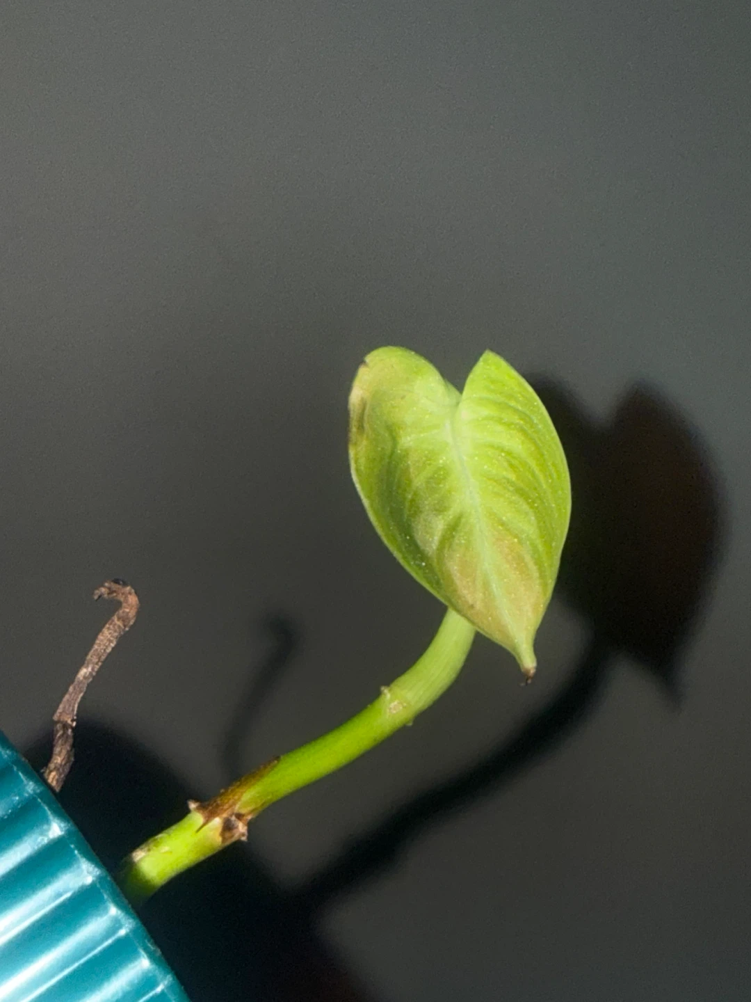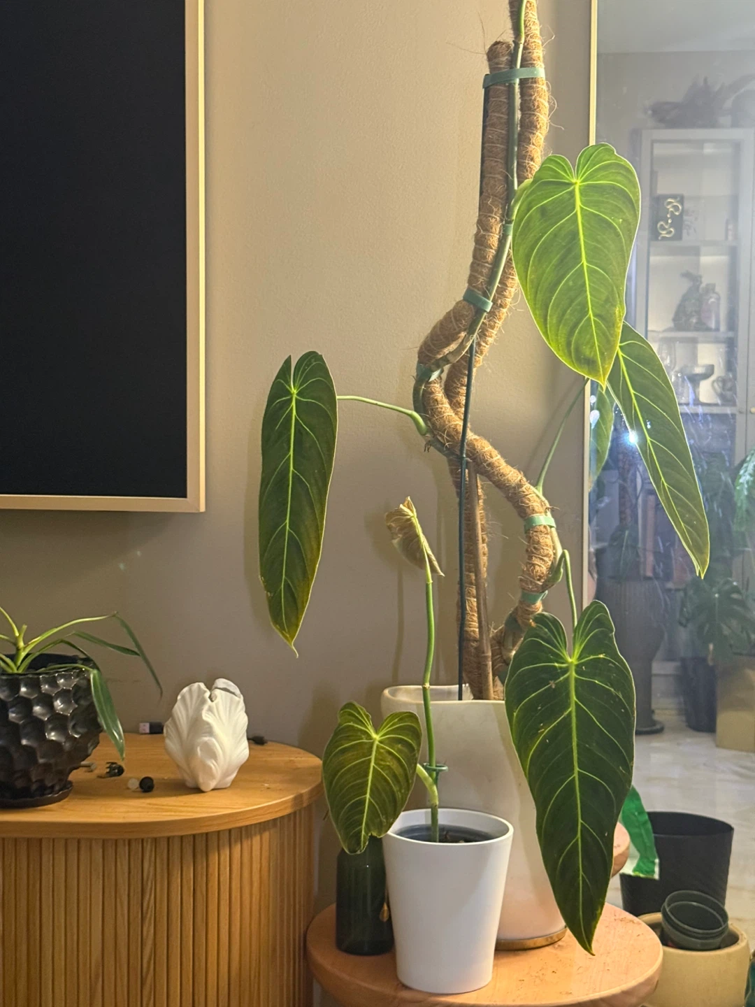 A little Philodendron melanochrysum, rare plant! It comes in a nice green pot with a matching saucer. It grew out from a mid node cutting of the mother plant (last photo). Pick up from queens elmhurst