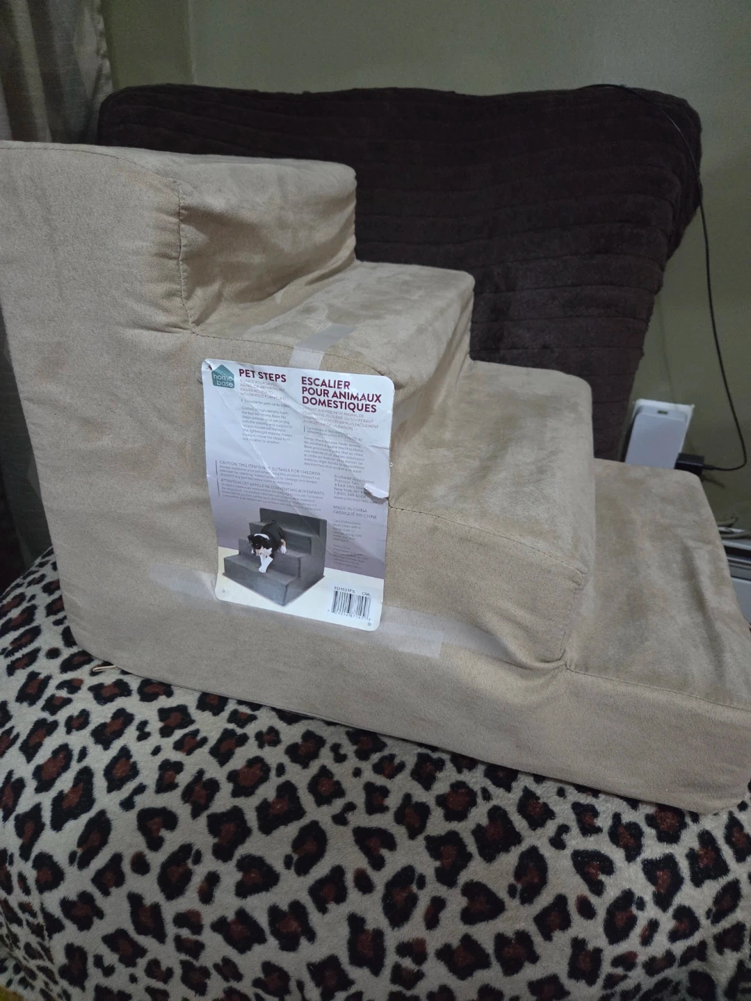 Selling a set of beige pet steps from Home Ease! These steps are perfect for helping your furry friend reach higher places with ease. They are designed to be lightweight and portable, making them easy to move around the house. The steps are in great condition and ready for a new home!