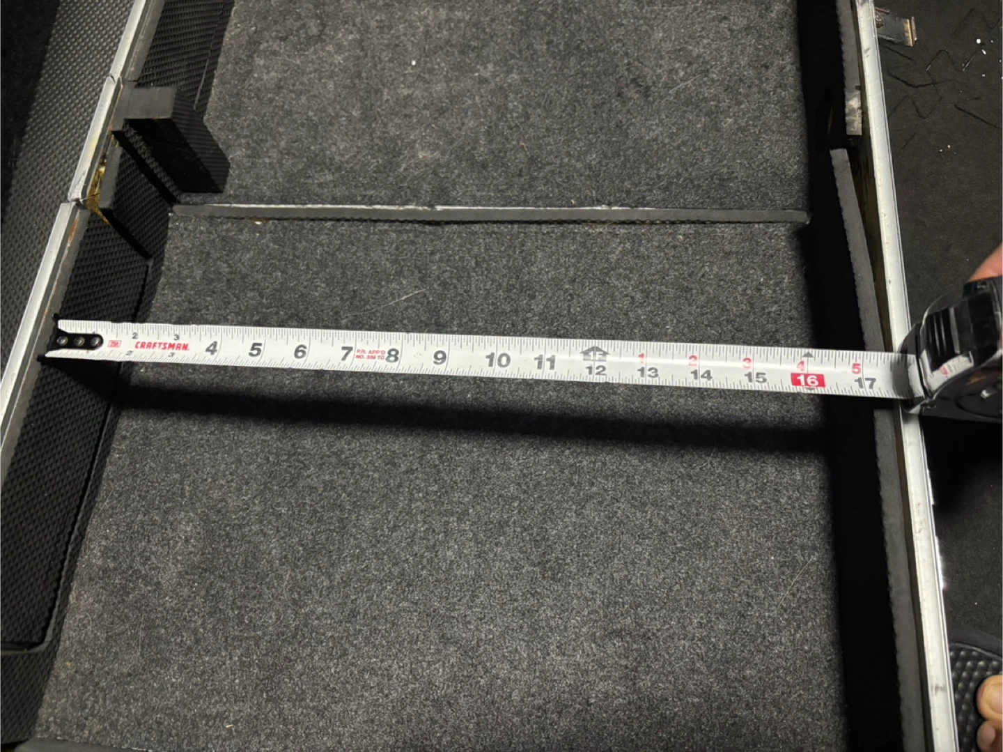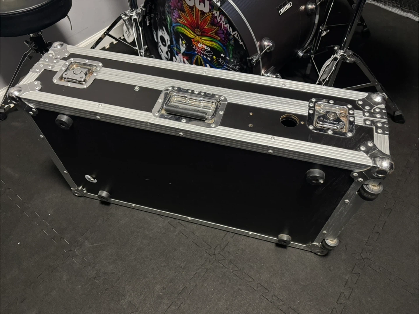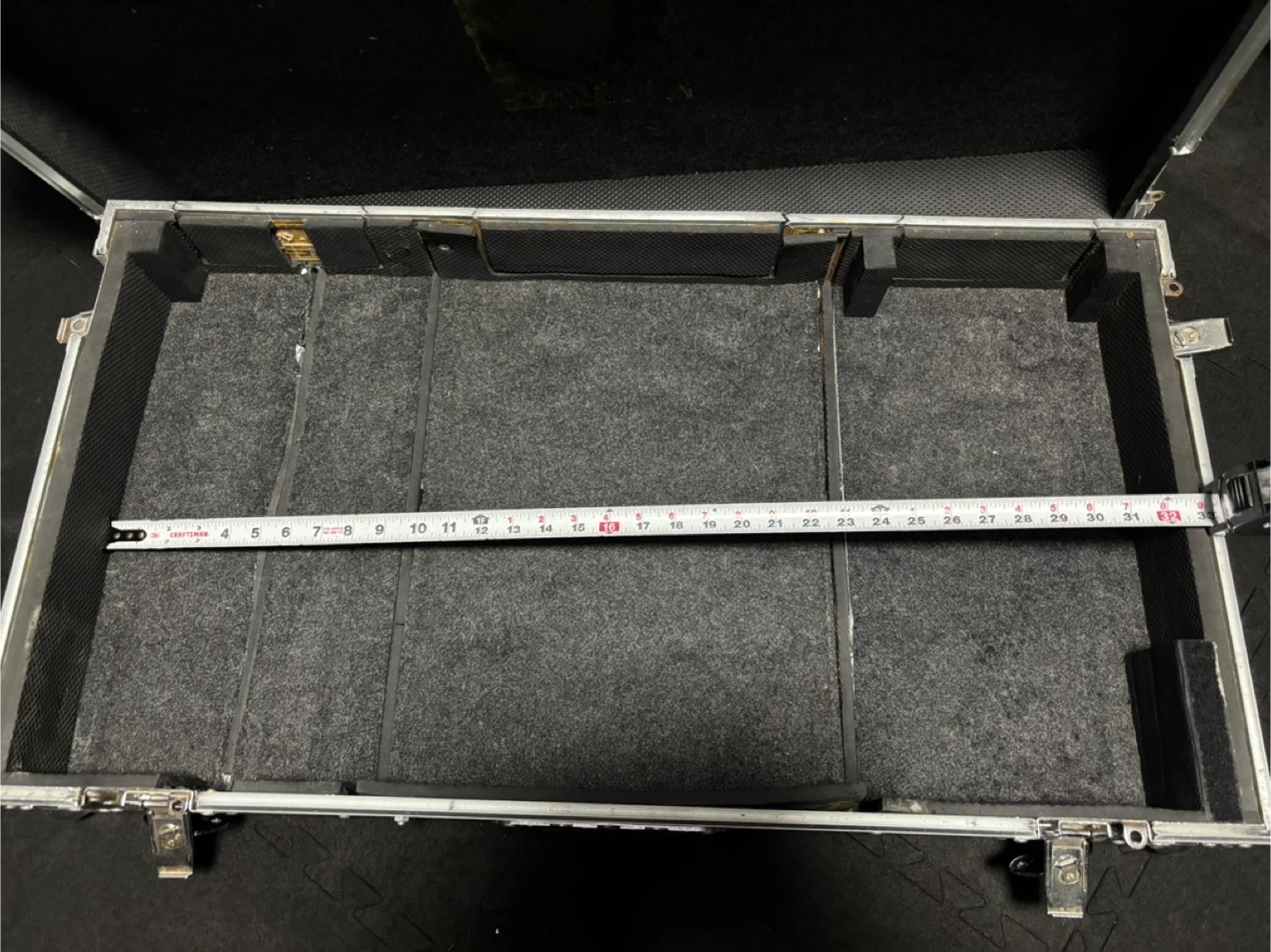This is a Marathon MA-CDJ12W flight case designed for DJ CD players and digital turntables. It features a sturdy construction with metal and carpeted interior. The interior measures approximately 17 inches long.