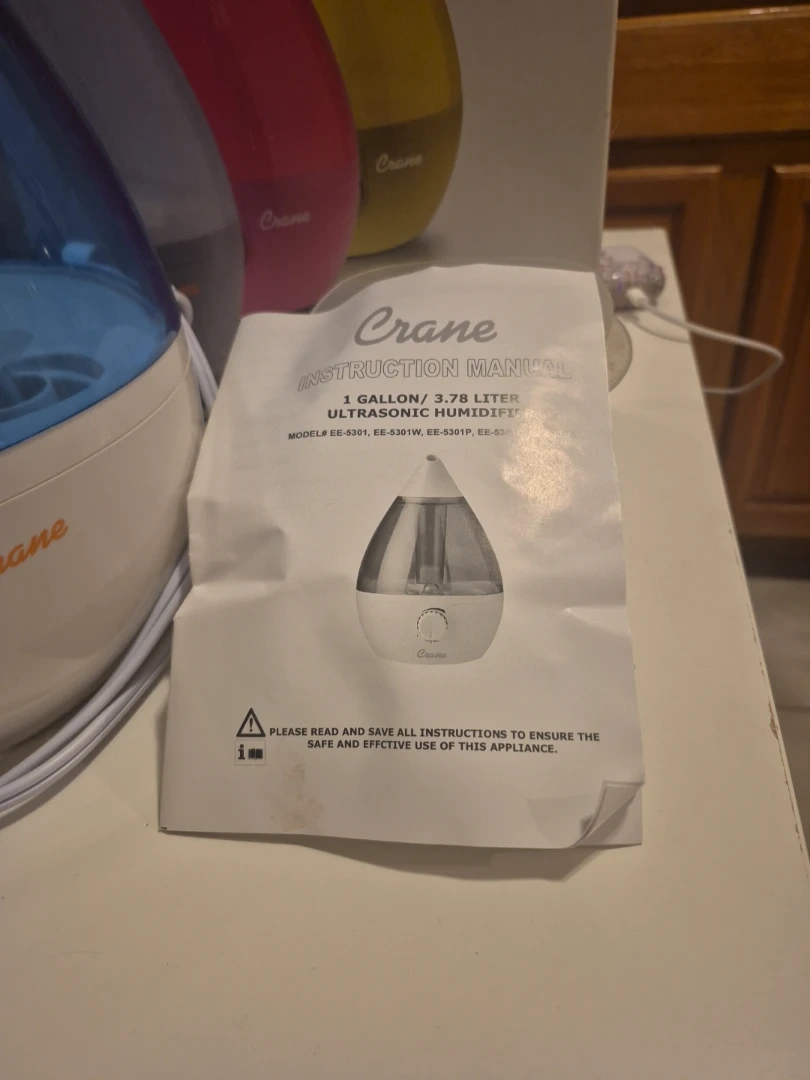 I'm selling a Crane Cool Mist Humidifier. It holds 1 gallon/3.78 liters of water. It also comes with the instruction manual and the original box! The technical specs include: