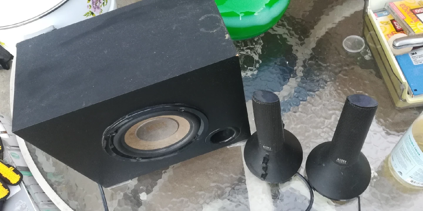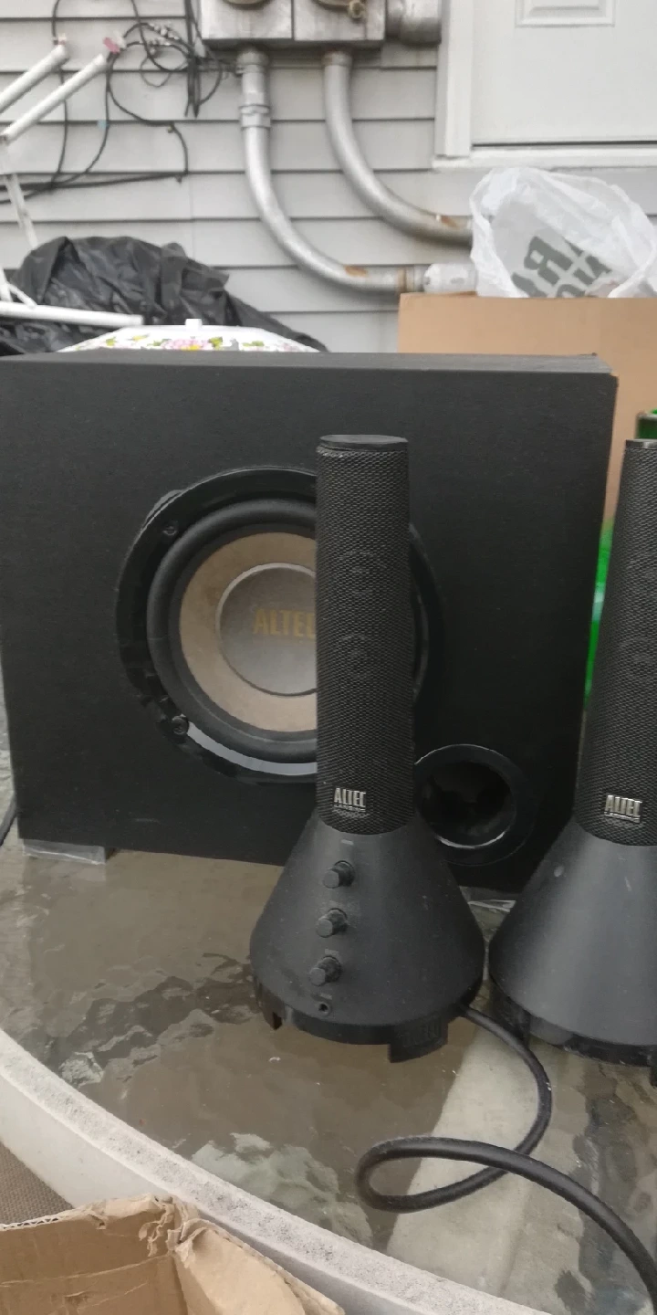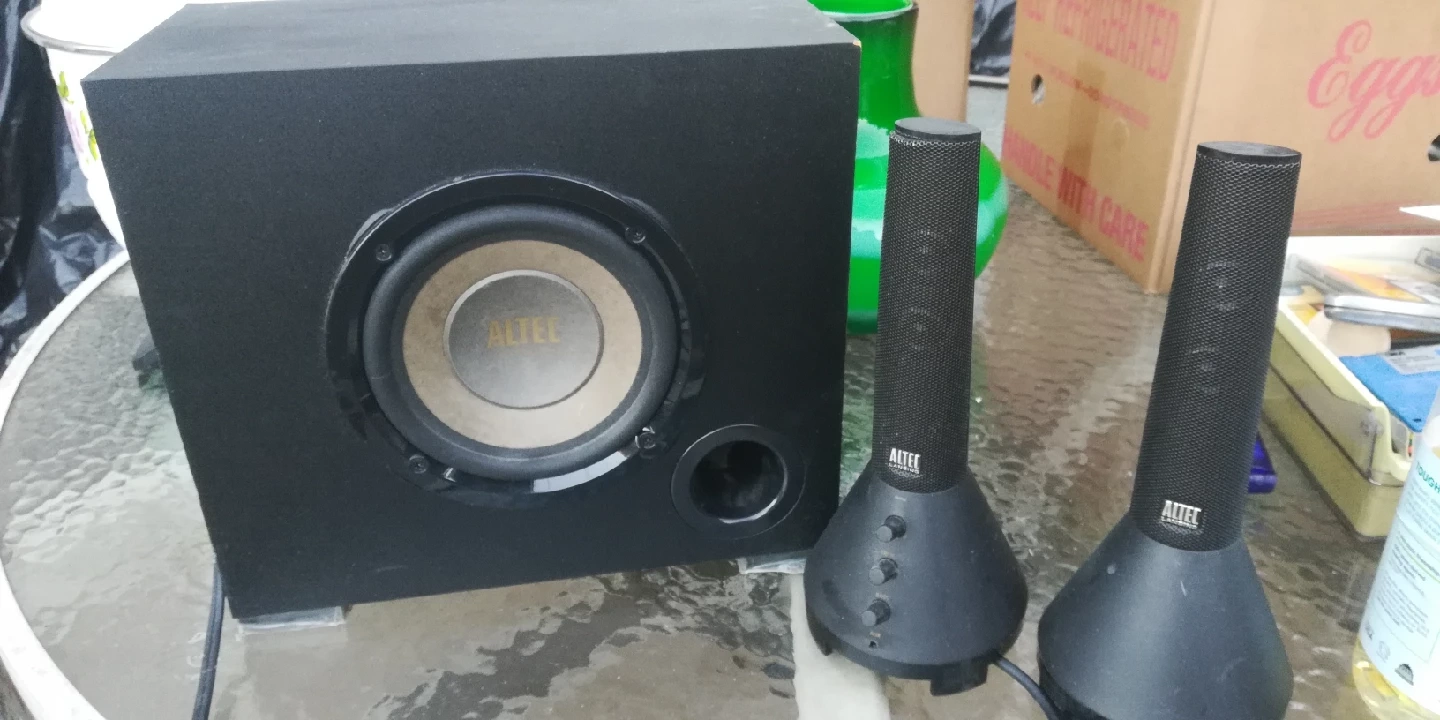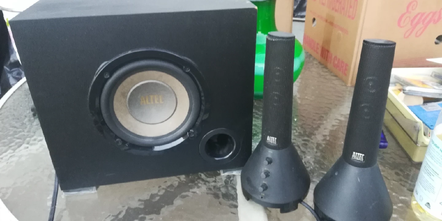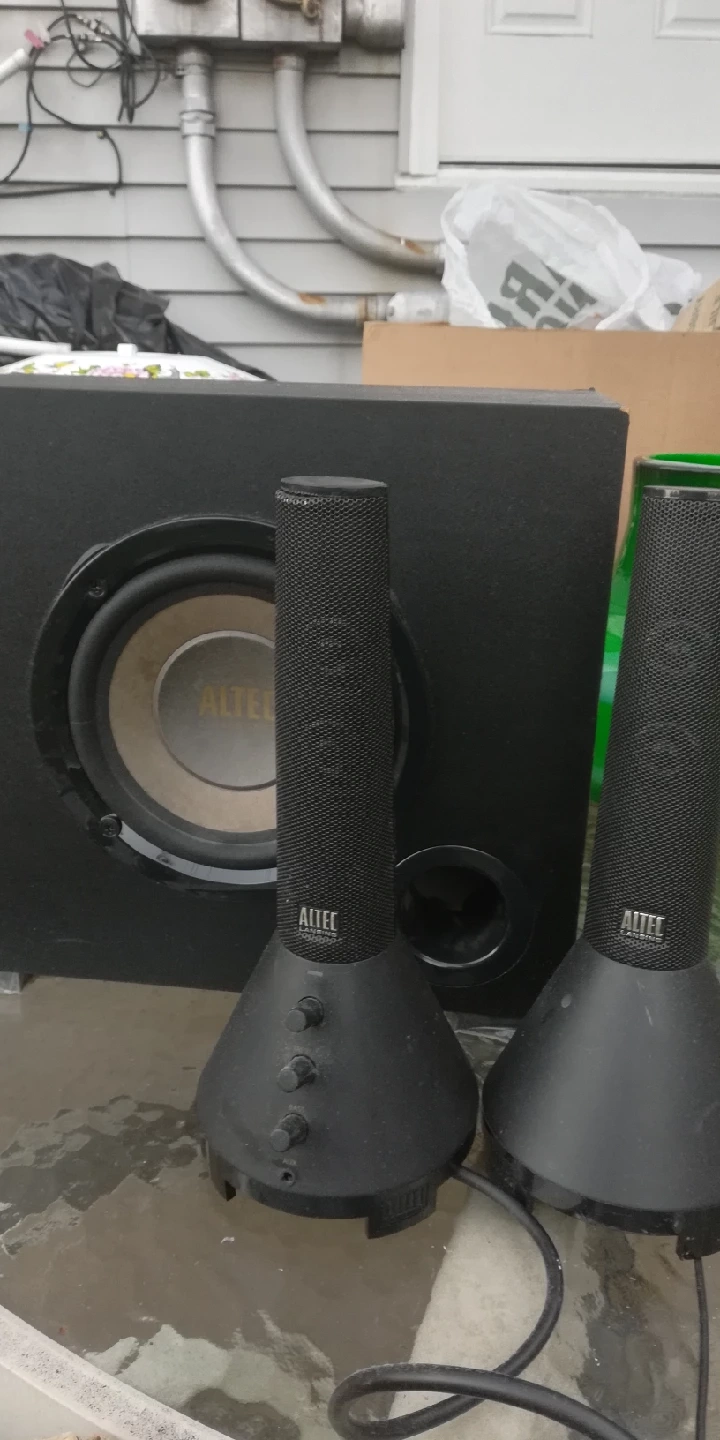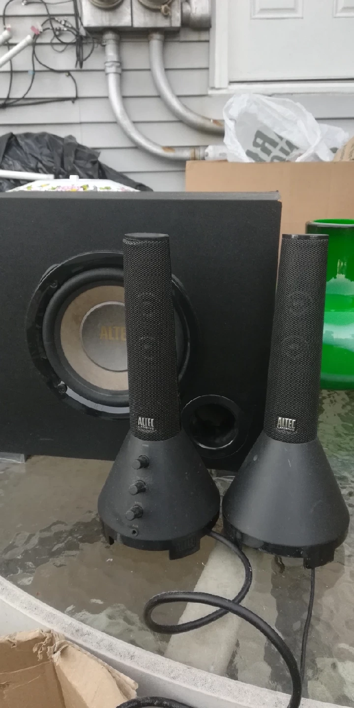 Selling an Altec Lansing 2.1 speaker system! Includes the subwoofer and two satellite speakers. Perfect for your desktop or small entertainment setup. Great sound quality for music, movies, and games