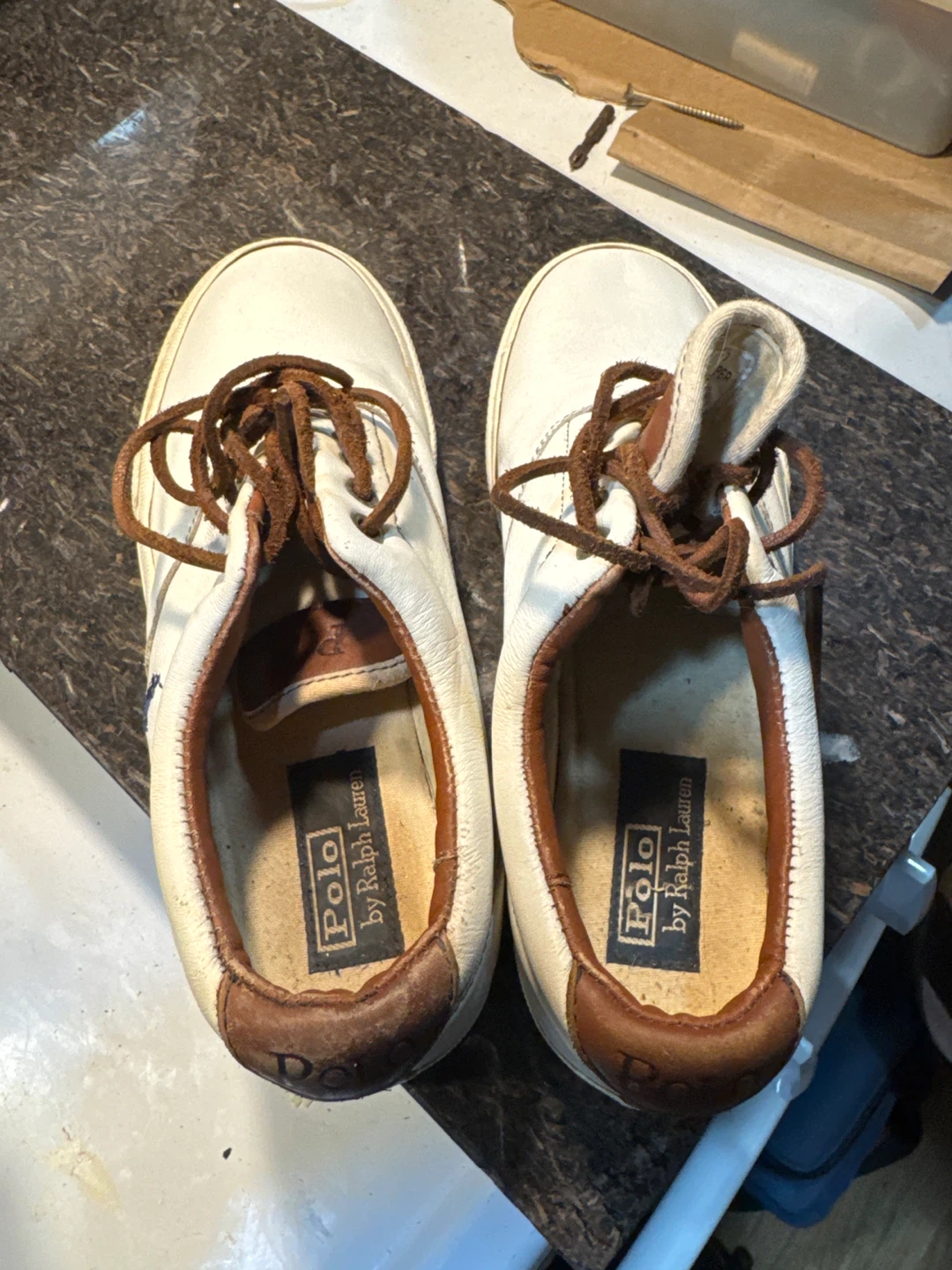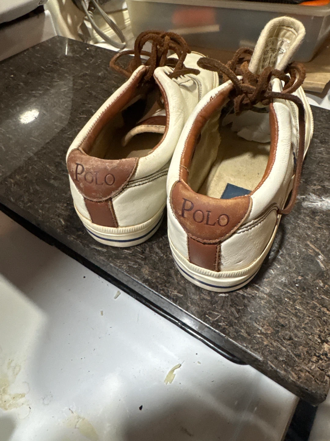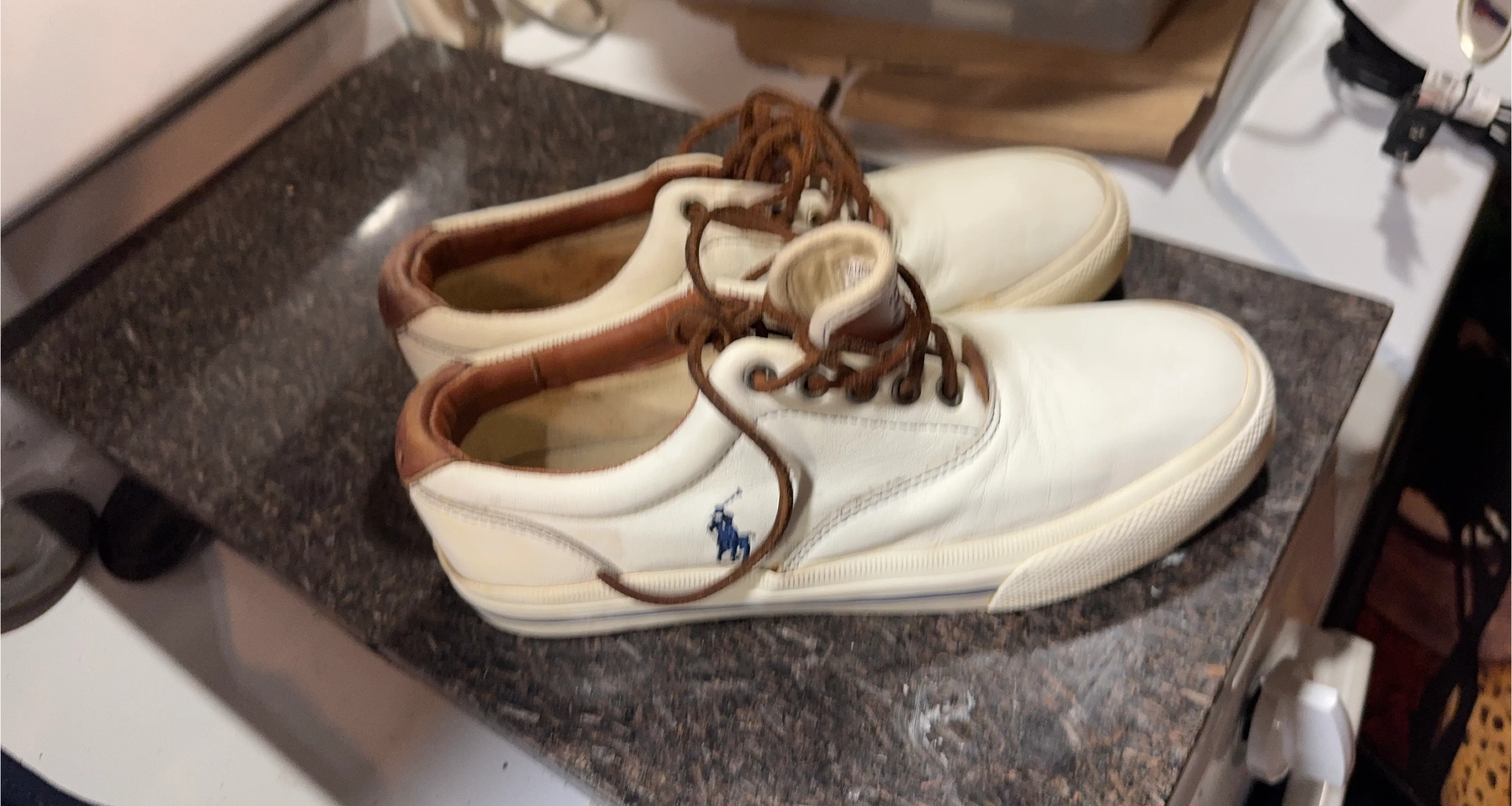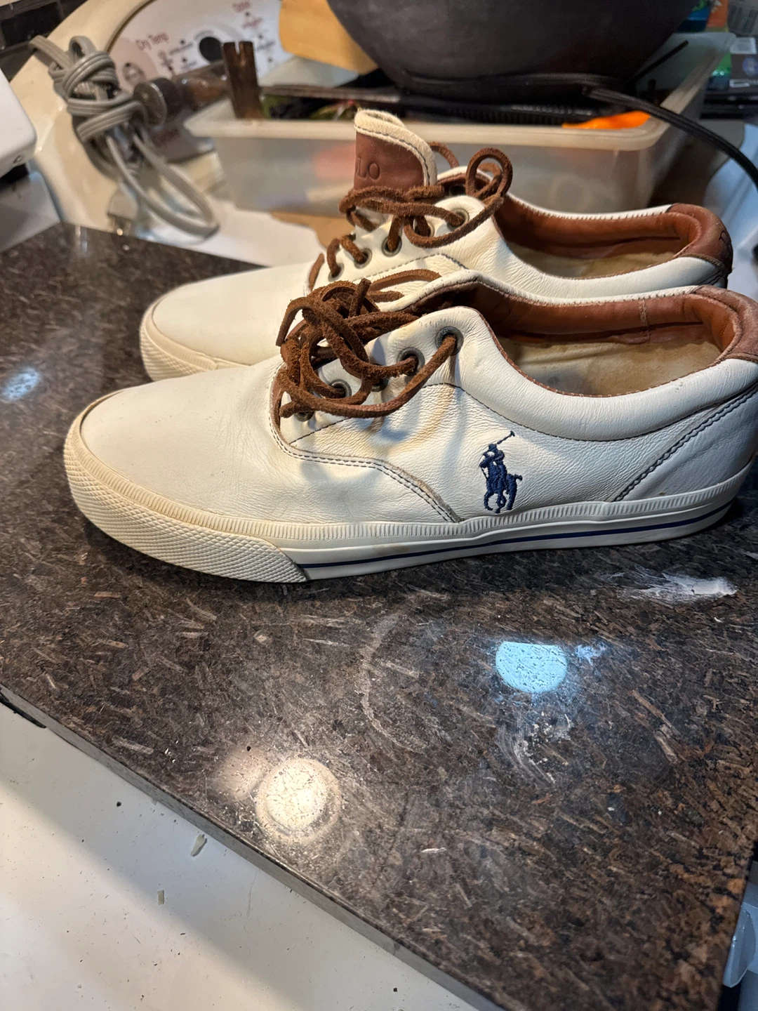 1 / 61 / 6Buy & SellPolo by Ralph Lauren White Leather SneakersPolo by Ralph Lauren White Leather Sneakers$10White leather sneakers with brown laces and trim. Features the iconic Polo player logo on the side. Rubber soles. B-1ConditionGoodSize9 BrandPolo by Ralph LaurenWHERE TO MEETStreet CornerView MapSELLERverifiedMoWaukegan961 review0 chats·0 favorites·8 viewsSEND CHAT TO SELLERHi Mo! I’m interested in your listing.Hi Mo! I’m interested in your listing.Get the Karrot app to chatSign In to chat
