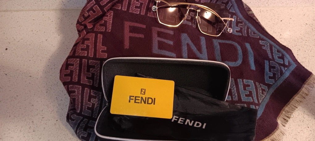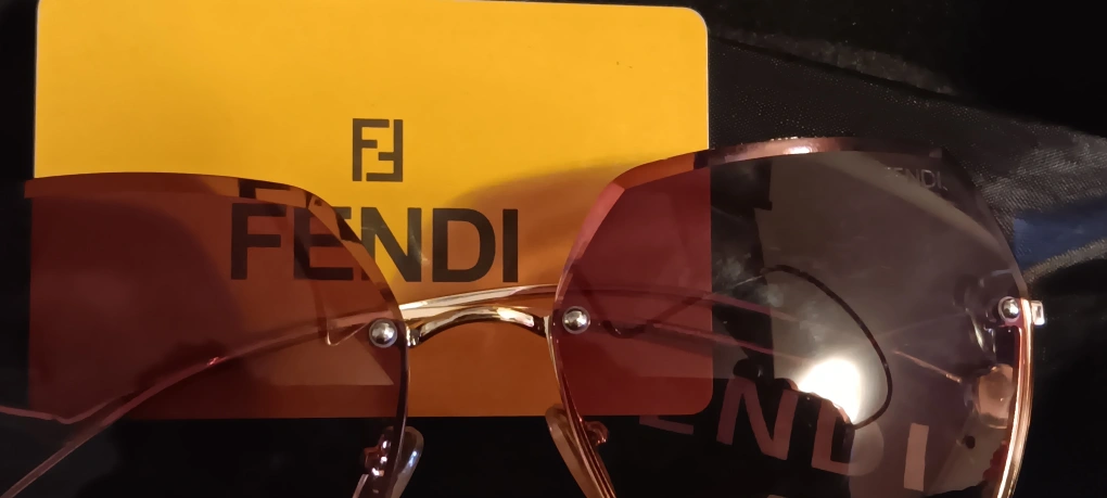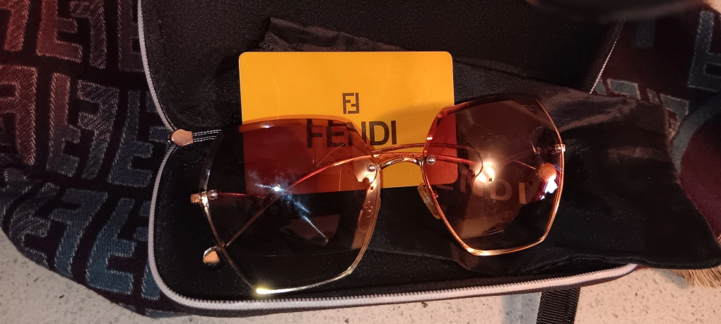 Fendi sunglasses, rimless design. Brown gradient lenses. Gold-toned metal frame. Comes with a hard case and microfiber cleaning cloth. Made in Italy.