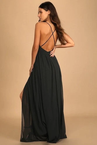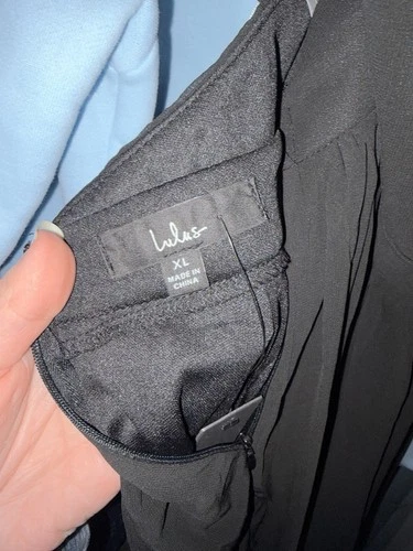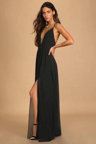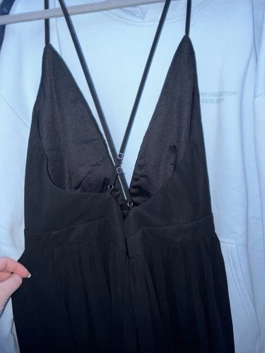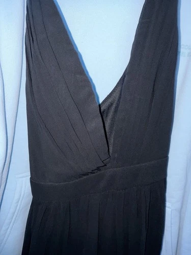 This Lulus Black Pleated Chiffon Maxi Dress in XL is a stylish and elegant choice for various occasions such as weddings, parties, or formal events. The backless slit design, adjustable straps, and a V-neckline add a touch of sophistication. Made from polyester chiffon, this long dress features a strappy sleeve and a classic solid black color. Perfect for the summer and spring seasons, this dress is sure to make a statement. Brand new with tags, never worn. Perfect condition. Stock photos and pictures of the actual dress are included.