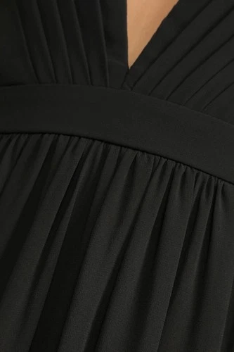 Lulus Black Pleated Chiffon Maxi Dress XL Backless Slit V-Neck