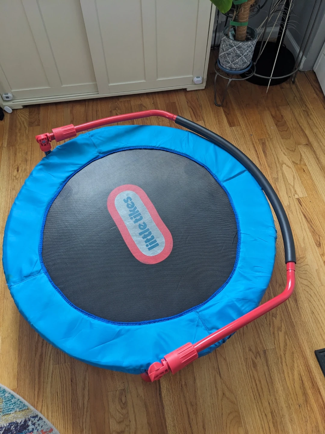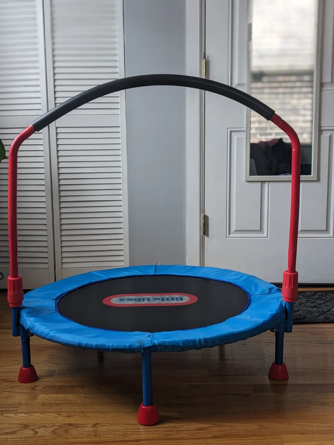 Great indoor trampoline for kids. The handle bar helps with balance and makes jumping safer for younger children.