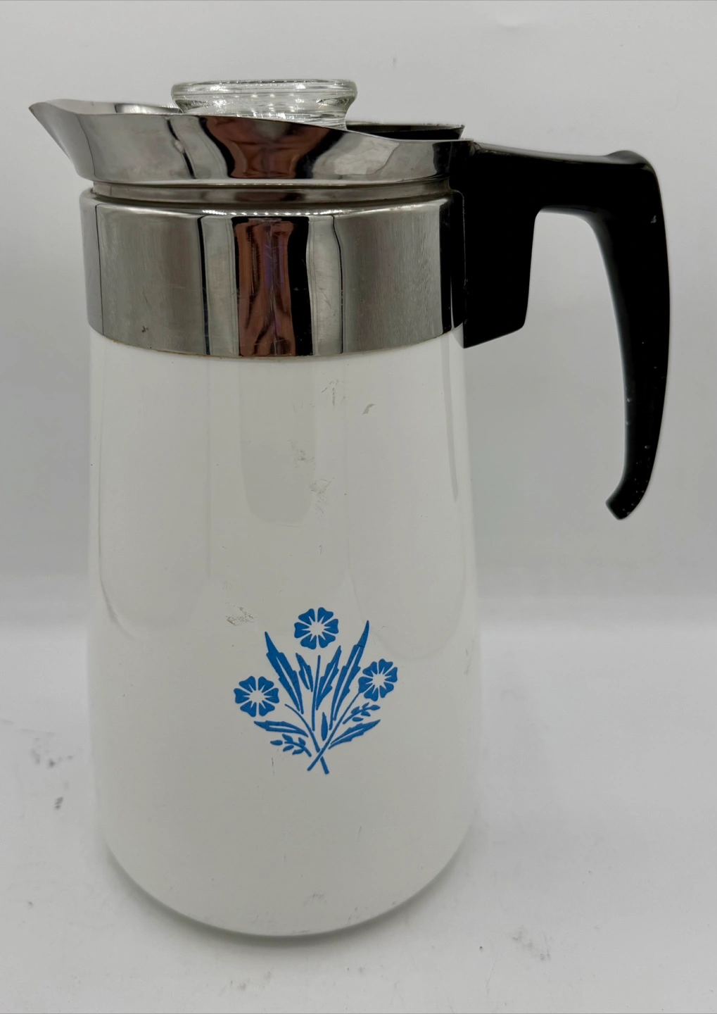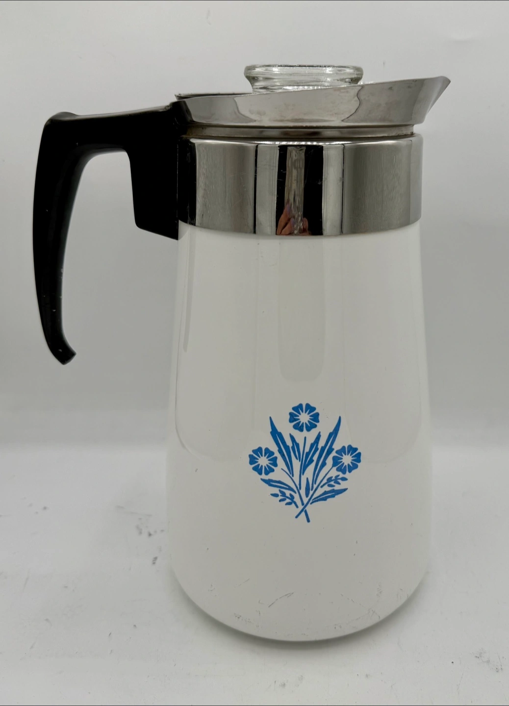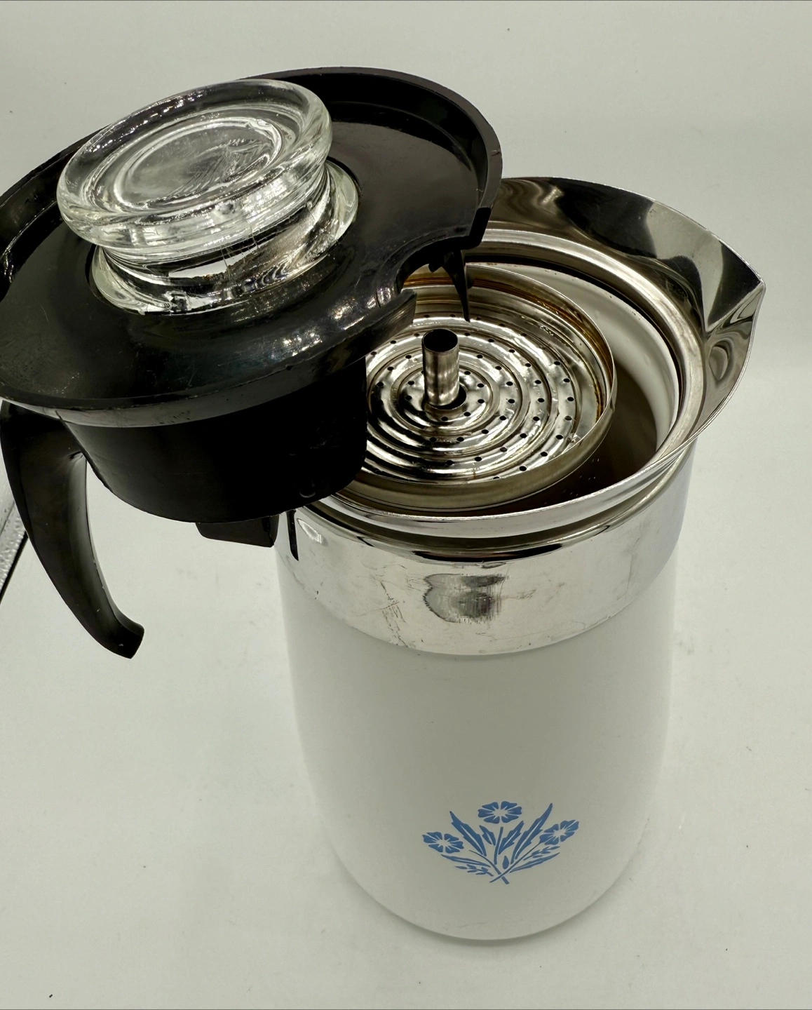 Vintage Corning Ware Percolator Coffee Pot 9 Cup Blue Flowers