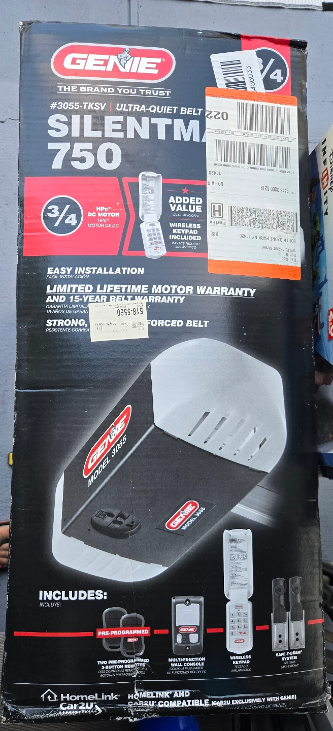 Garage door opener in the box. Includes pre-programmed remotes and a wireless keypad. This item is perfect for anyone who likes to enter and exit their garage with ease.