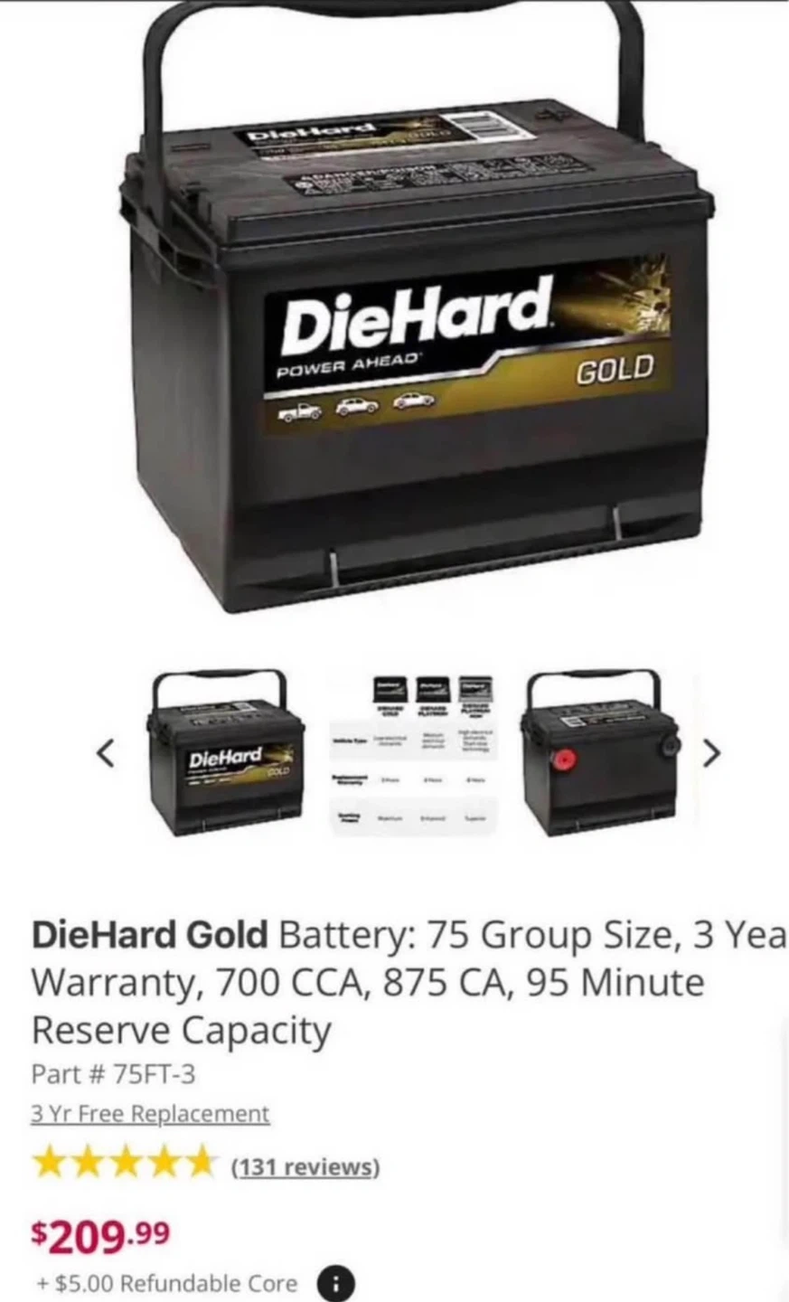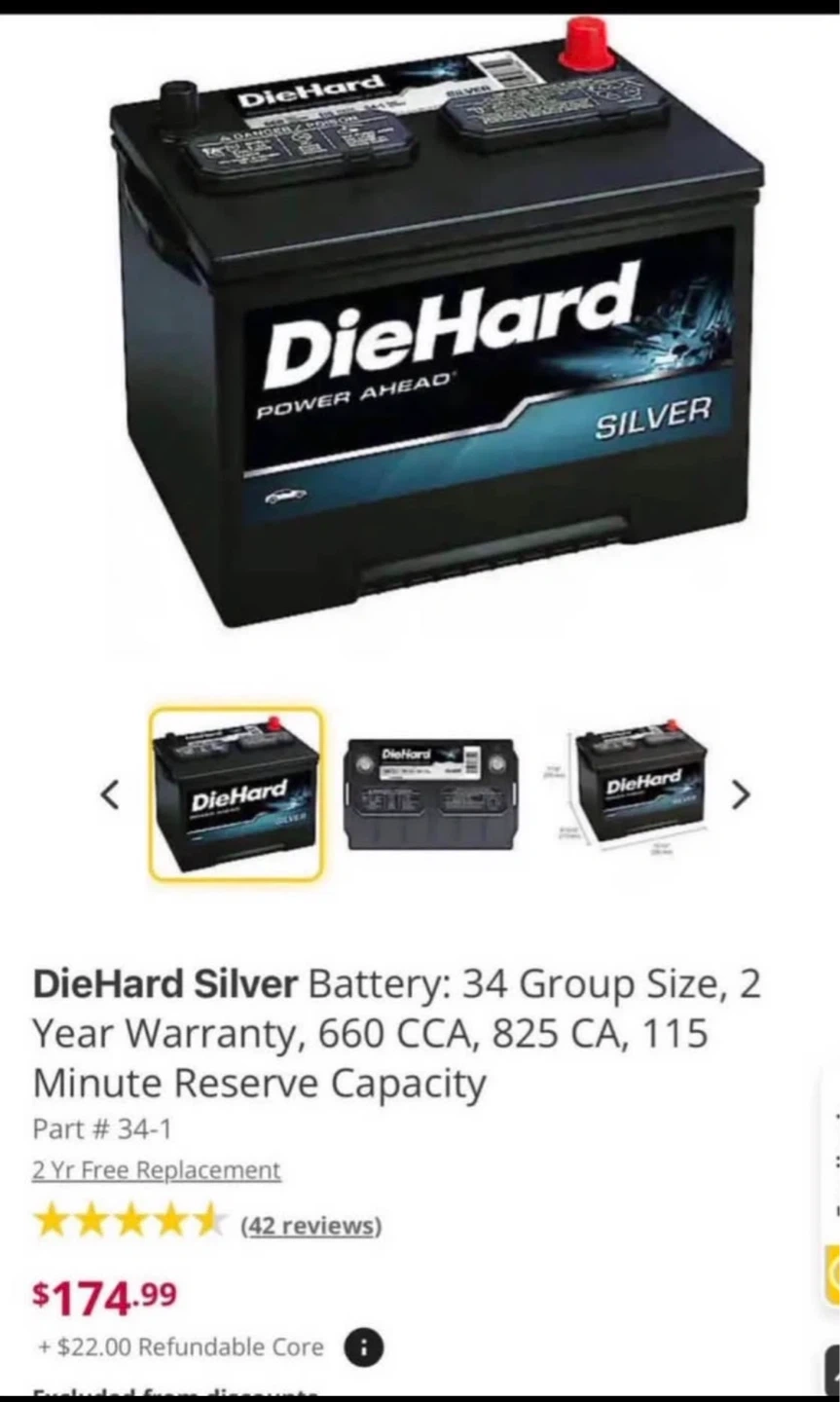 DieHard Silver Battery: 34 Group Size, 2 Year Warranty