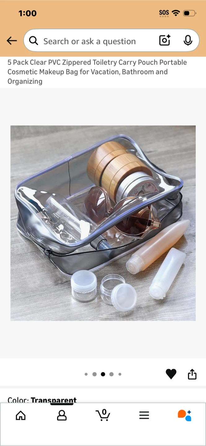 Lot of 5 PVC Zippered Toiletry Bags