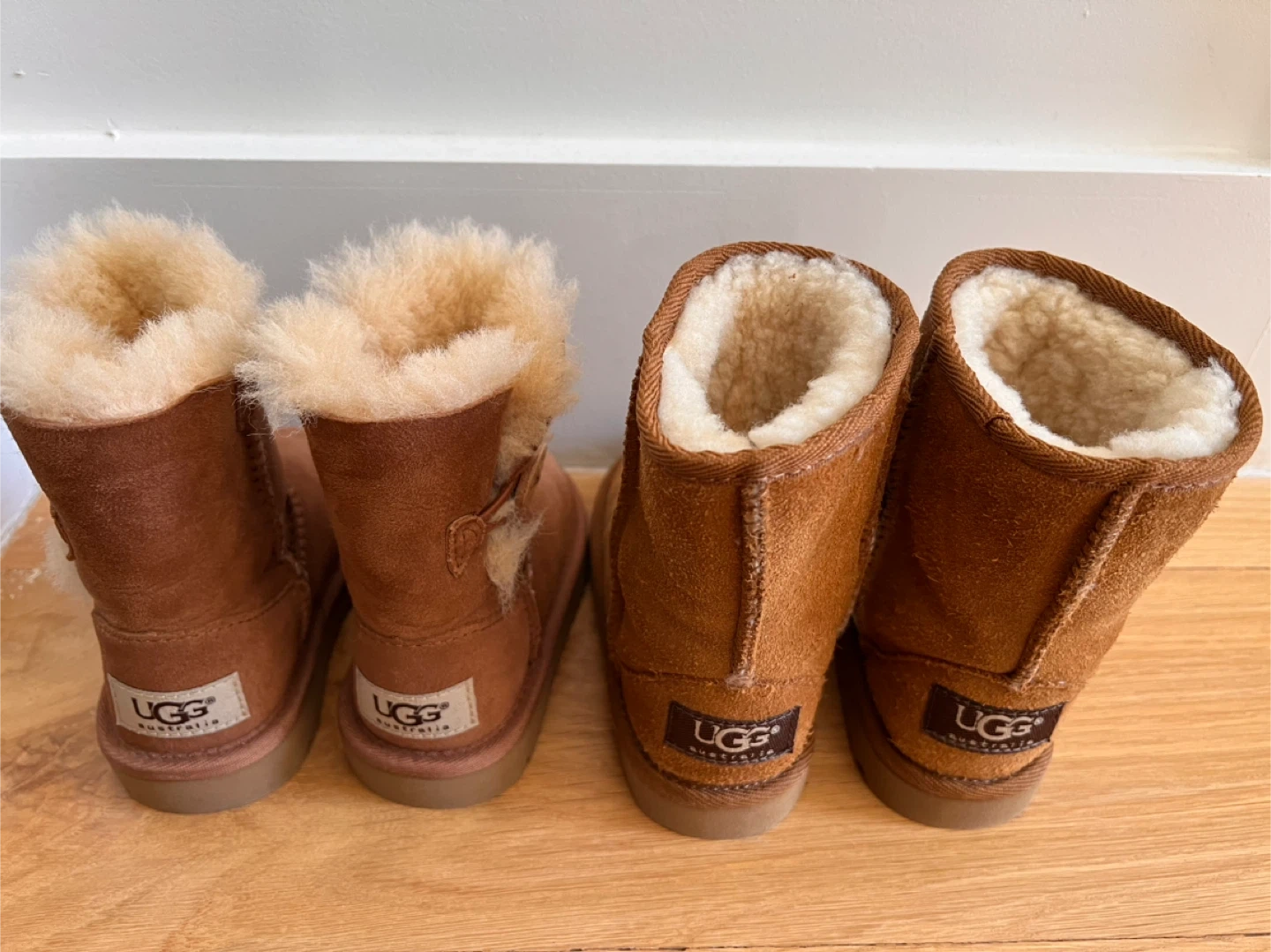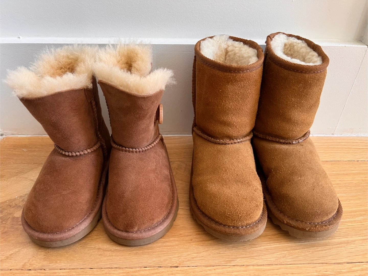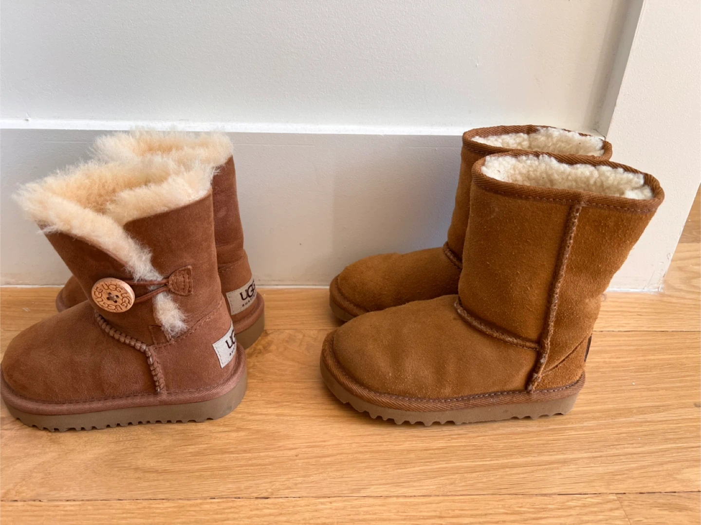 1.Bailey button II Boot (left one) Size:6T Color:Chestnut Never worn (brand new) $40 *no box included 2.Classic II Boot (right one) Size:8T Color:Chestnut Only worn once $40 *no box included