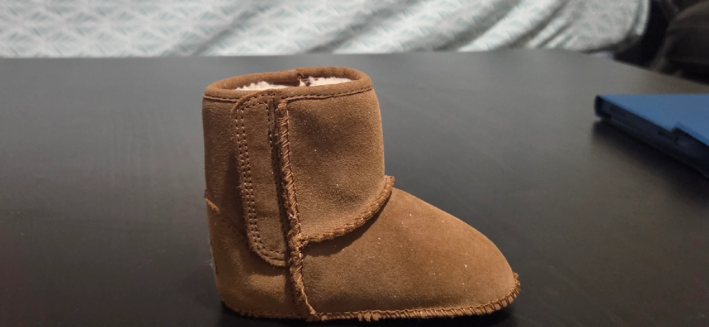 10These UGG baby boots are super cute and in great condition! They are a size 2 in US sizing and a lovely brown color. Perfect for keeping your little one's feet warm and cozy