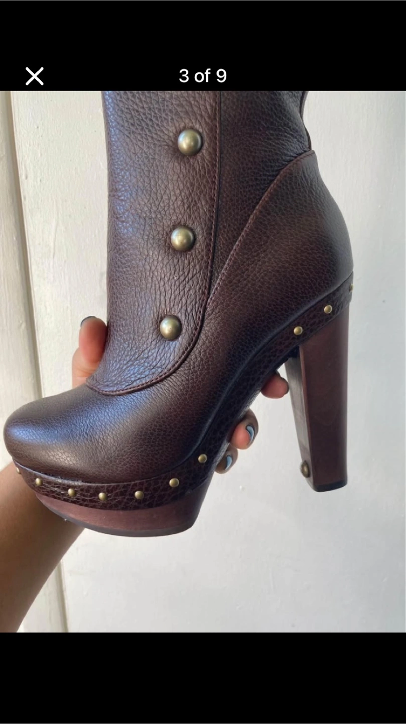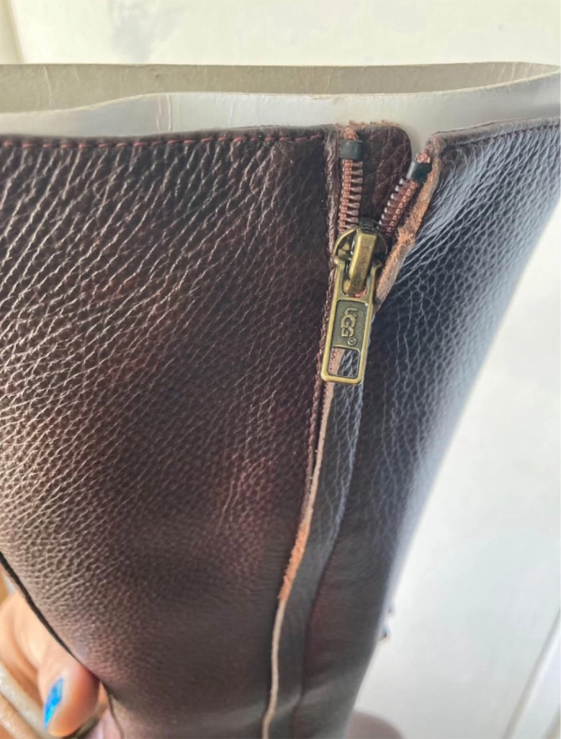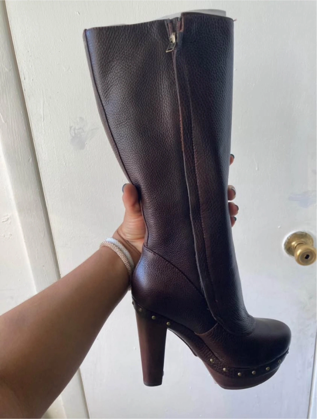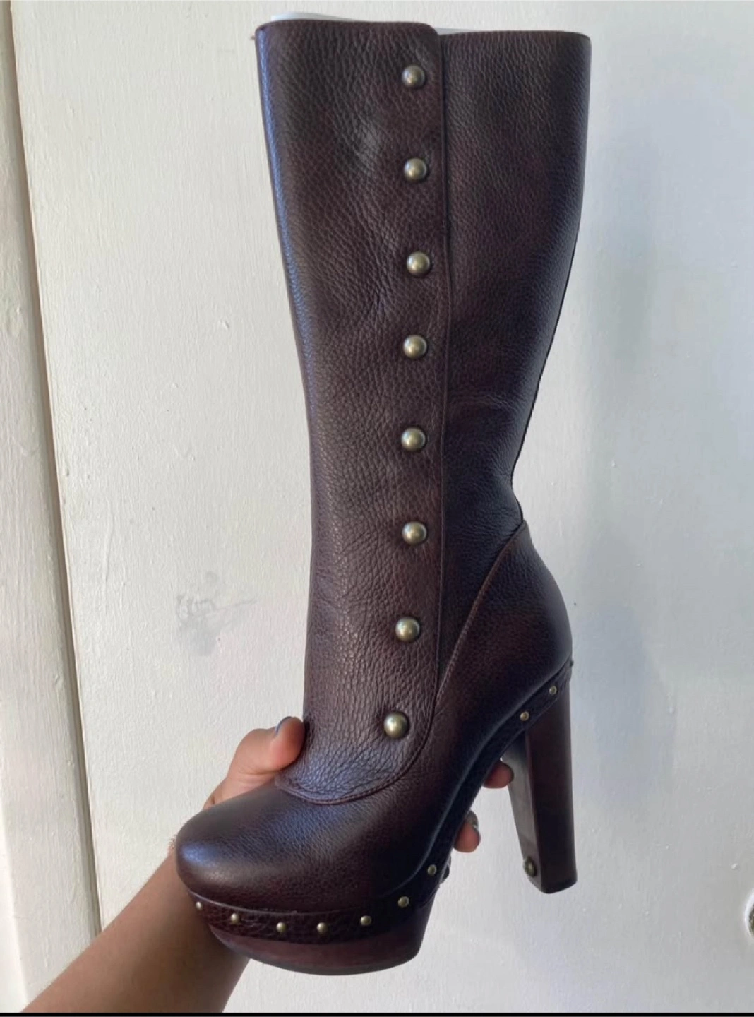 UGG Brown Leather Knee High Heel Boots - Size 6