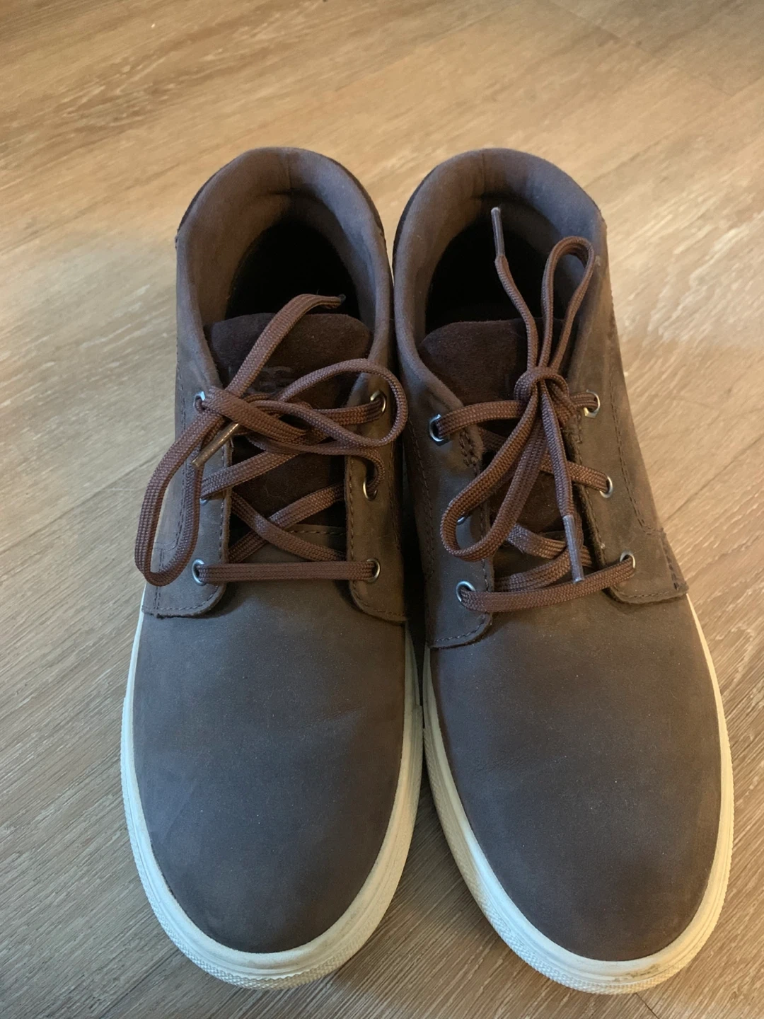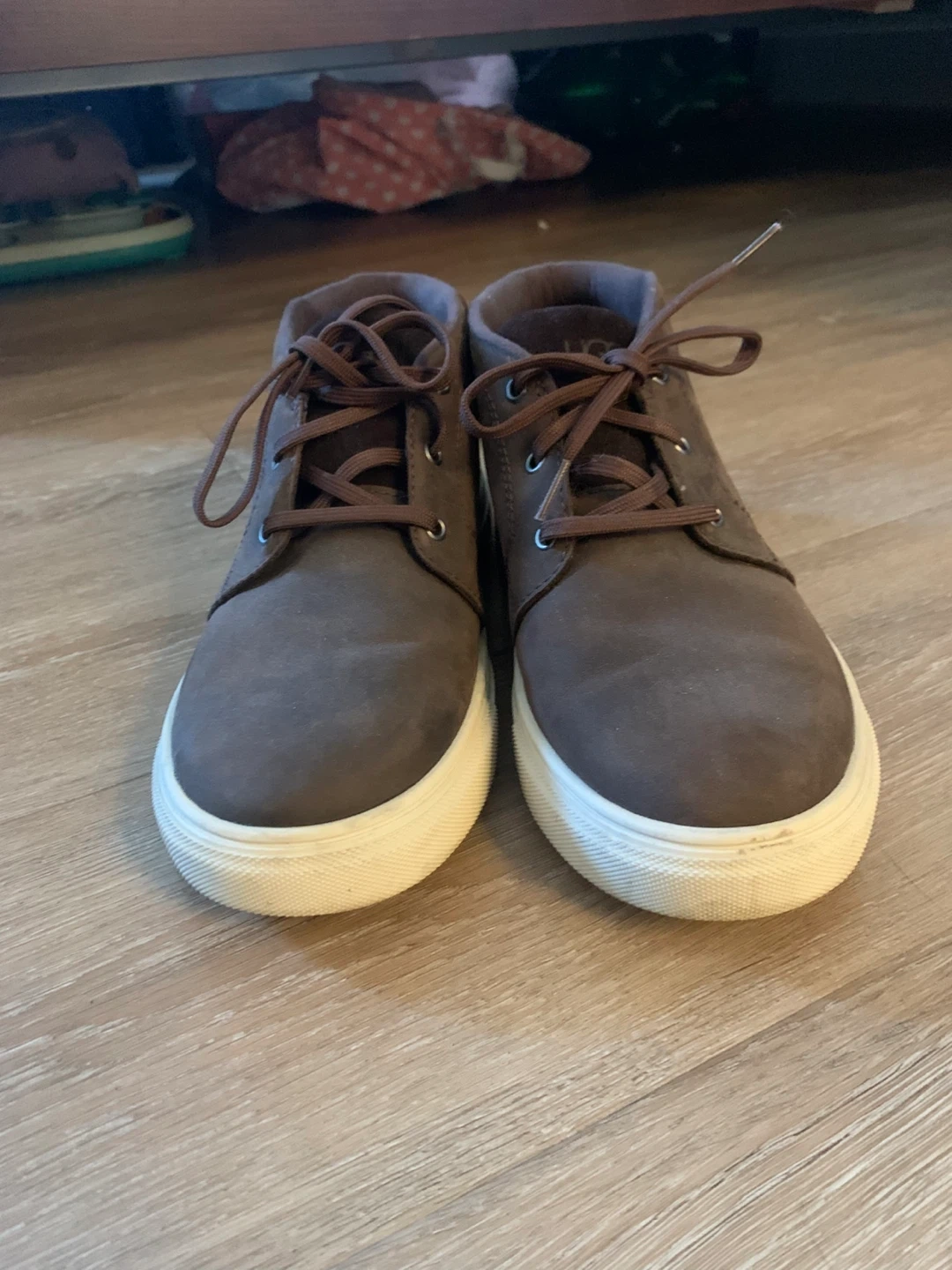 30Selling a pair of UGG chukka-style sneakers. They're a nice brown suede color and have a white sole. They show some signs of wear on the soles, but the uppers are in great shape!