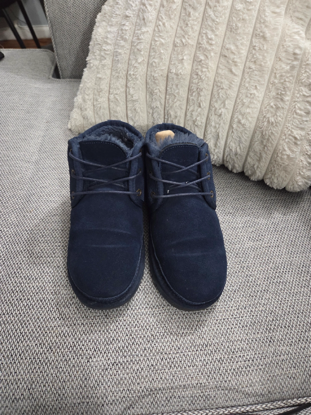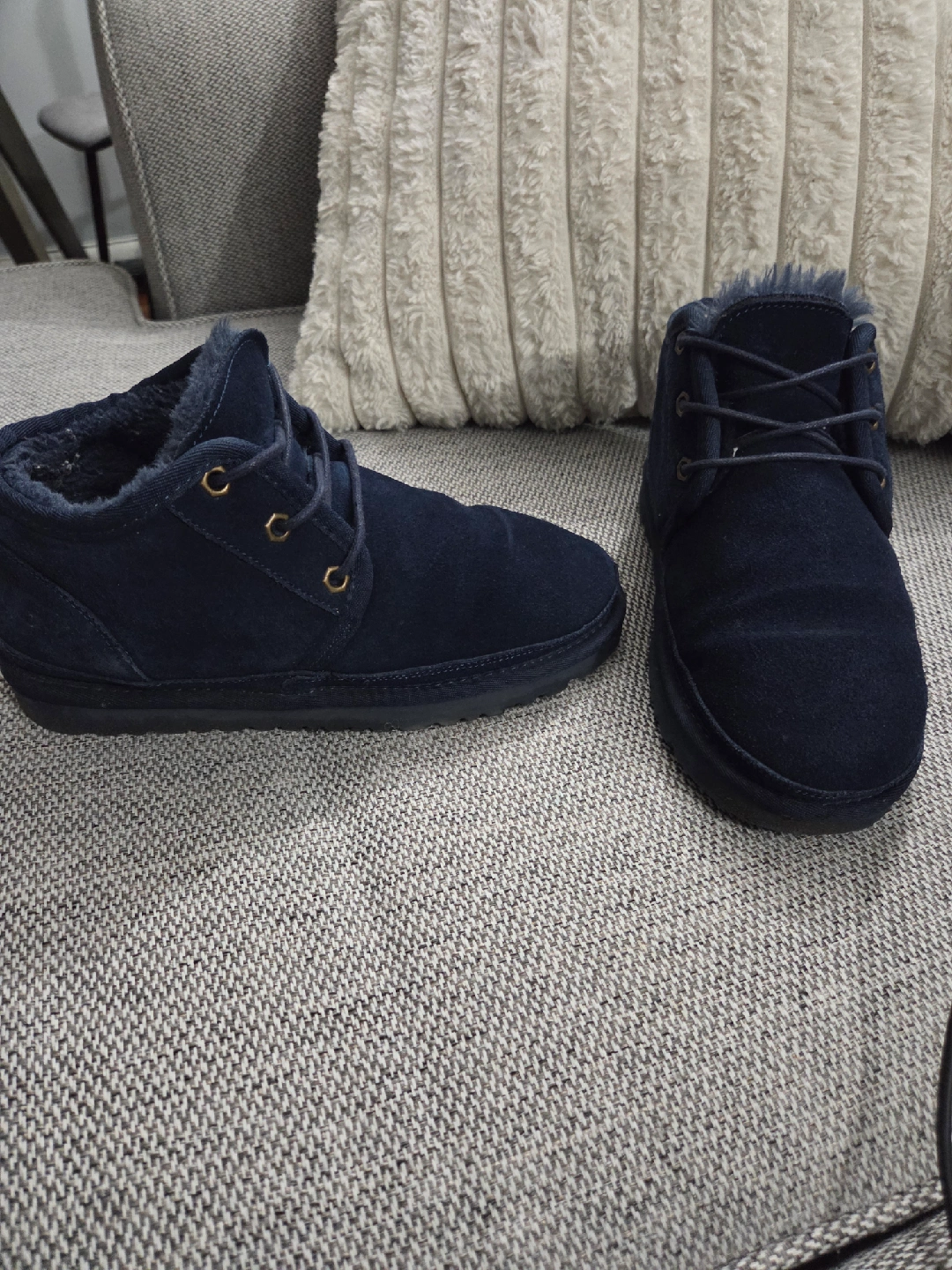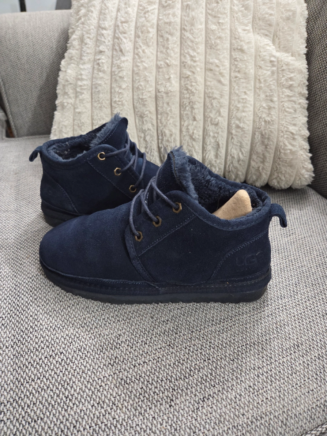 60Selling a pair of UGG Emmett Chukka shoes in women's size 9. They are a stylish navy blue color and made with quality materials. Perfect for casual wear and comfortable for everyday use!