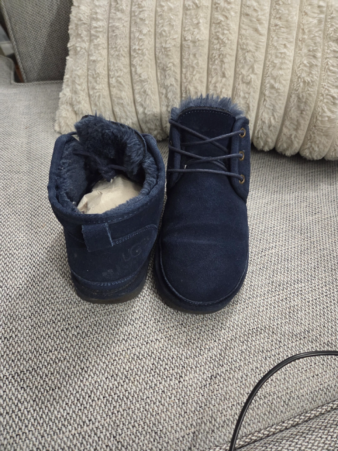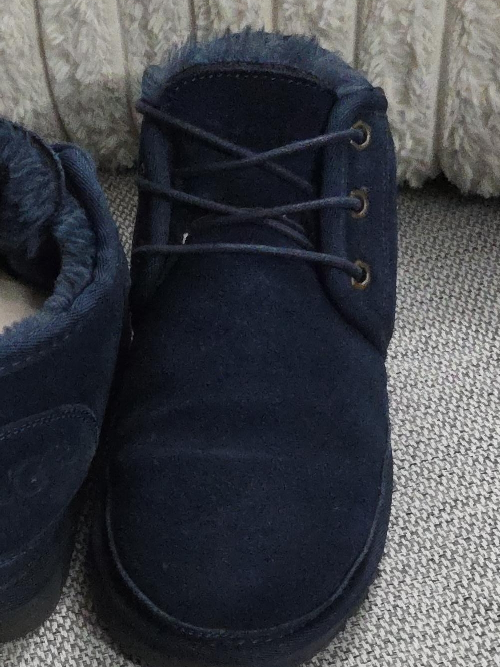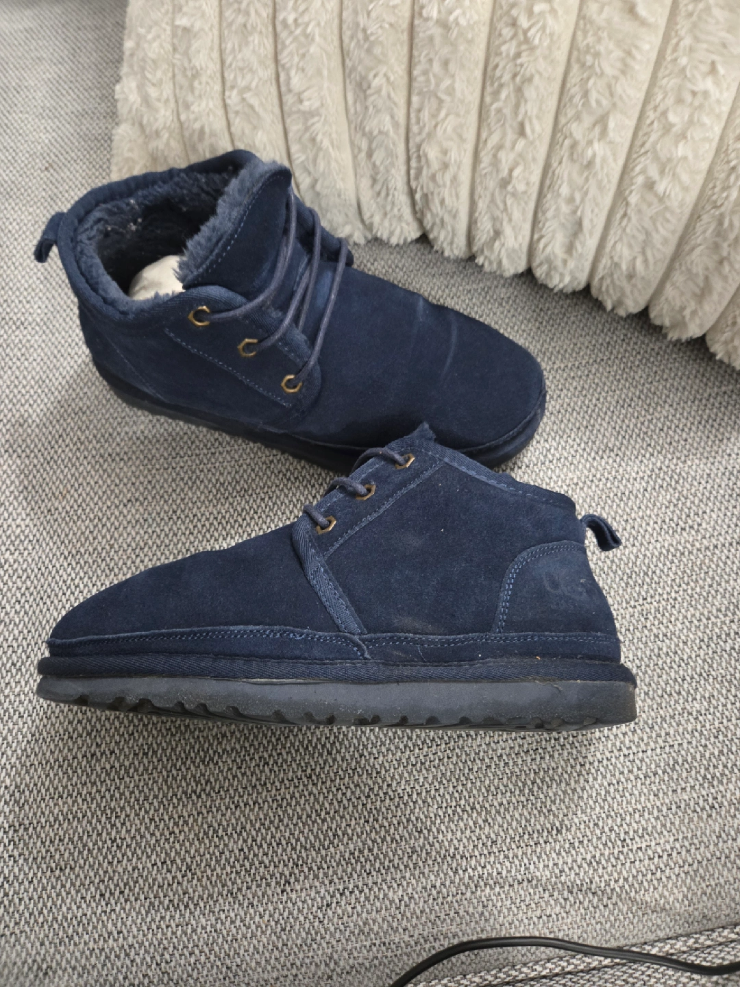 60Selling a pair of UGG Emmett Chukka shoes in women's size 9. They are a stylish navy blue color and made with quality materials. Perfect for casual wear and comfortable for everyday use!