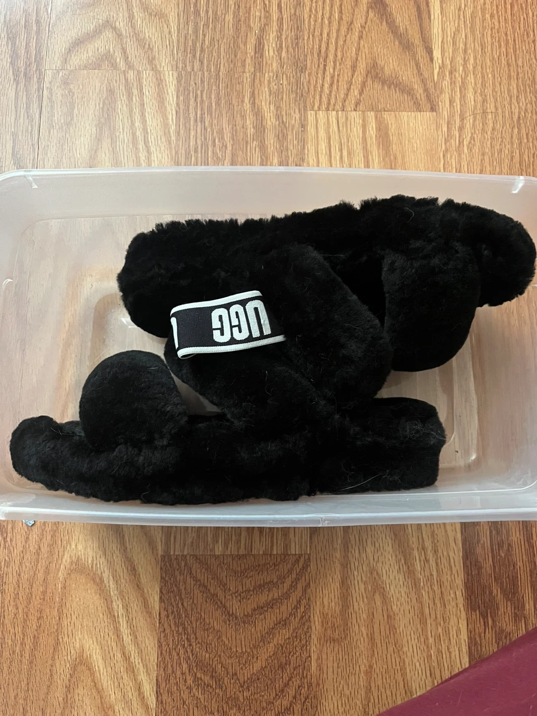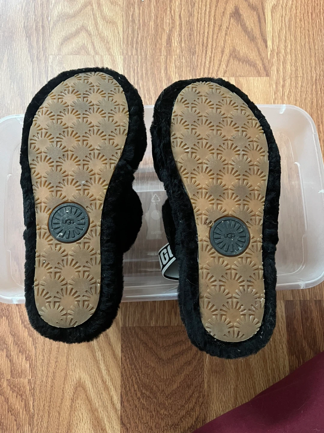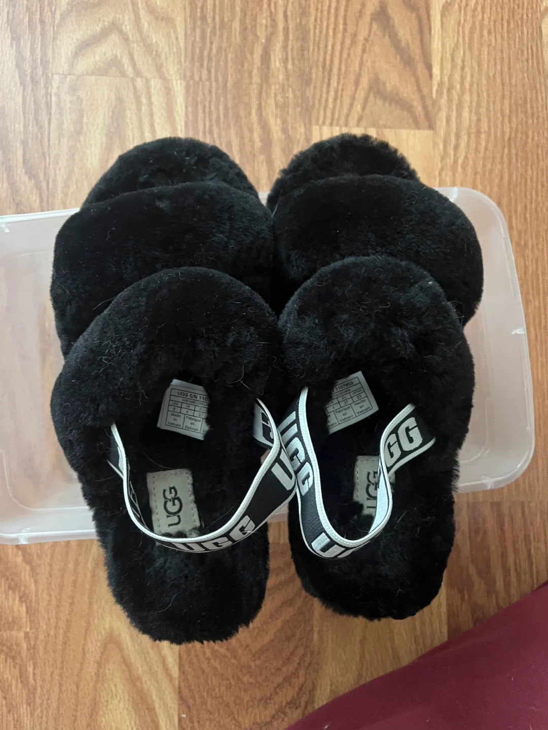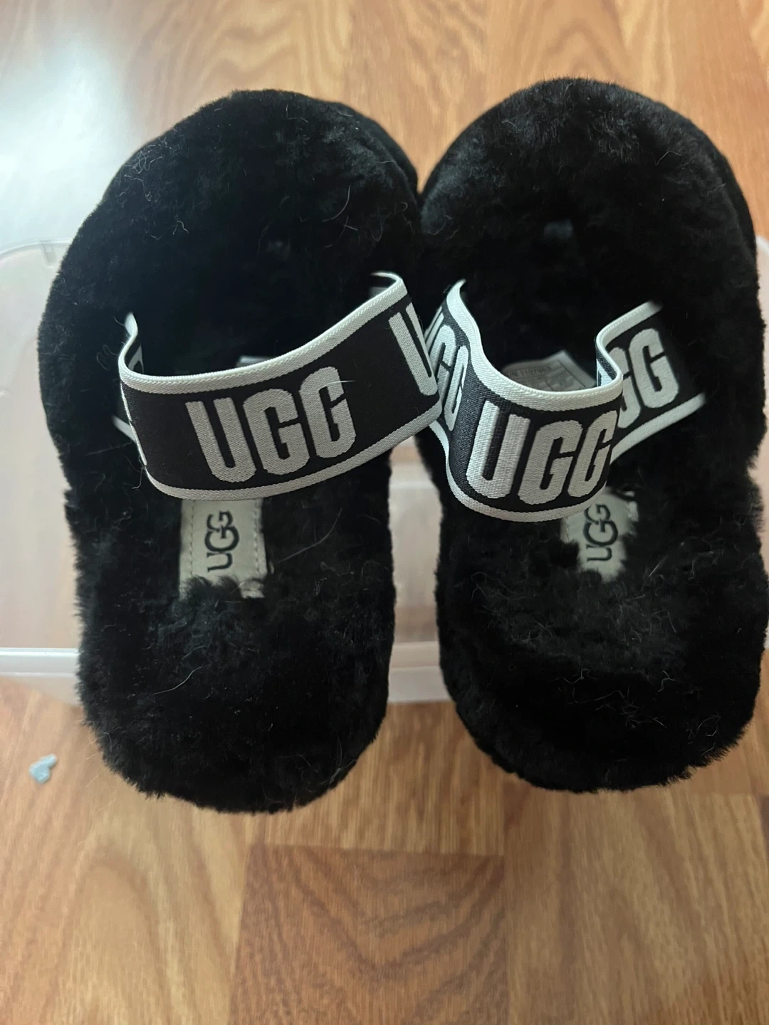 Selling a pair of UGG Fluff Yeah slides in black. They are super comfy and in great condition. Perfect for wearing around the house or even out and about!