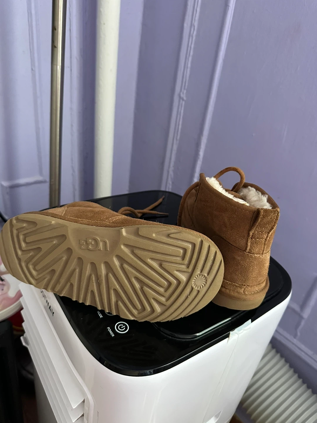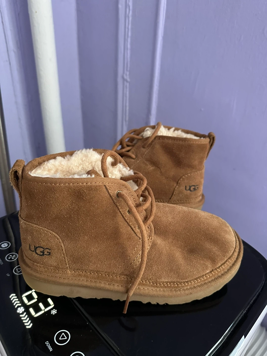 96Selling a pair of UGG Neumel chukka boots They're a size 3 perfect for keeping little feet warm and cozy! The classic UGG style and quality make these a great choice for your little one.