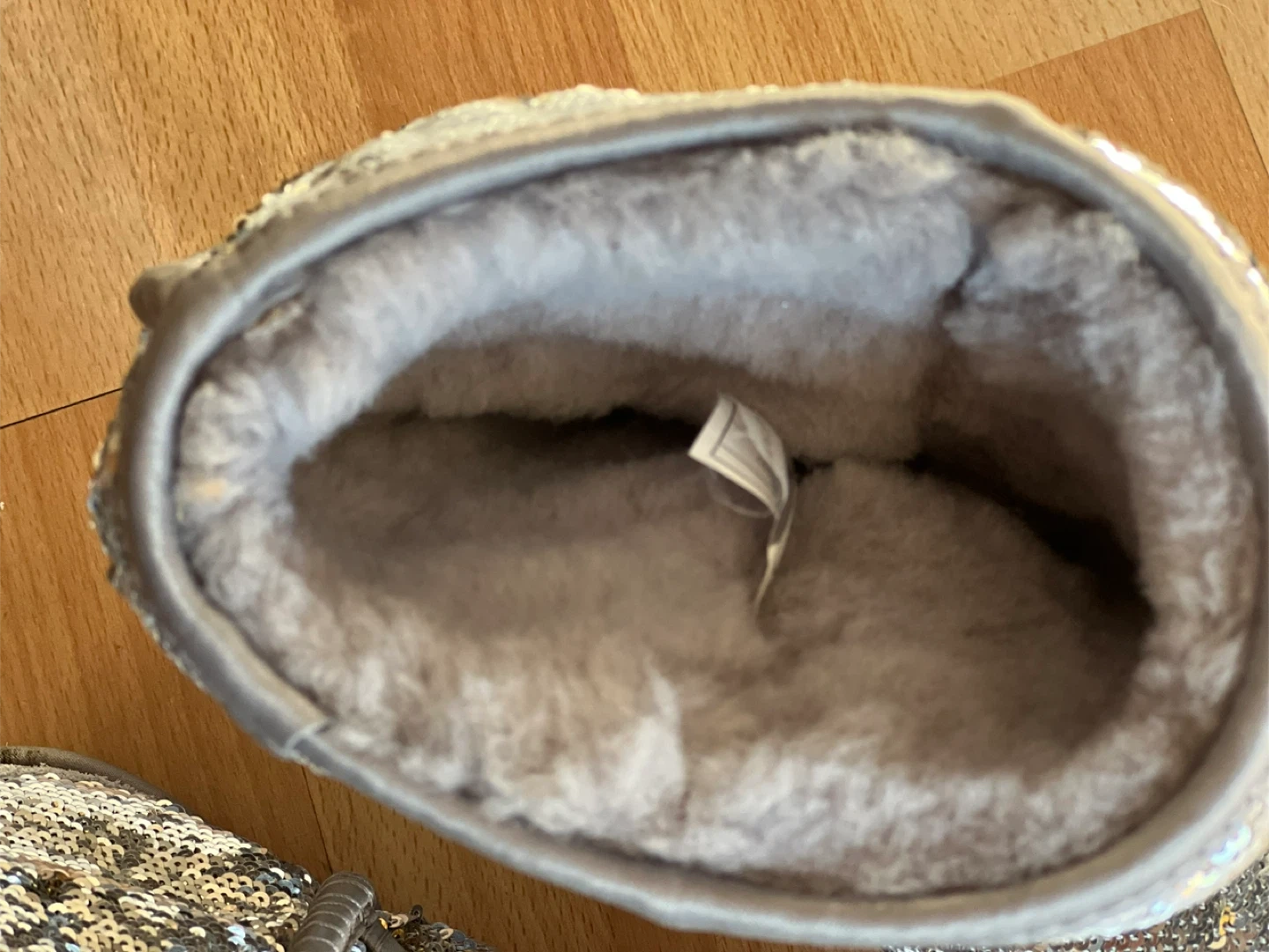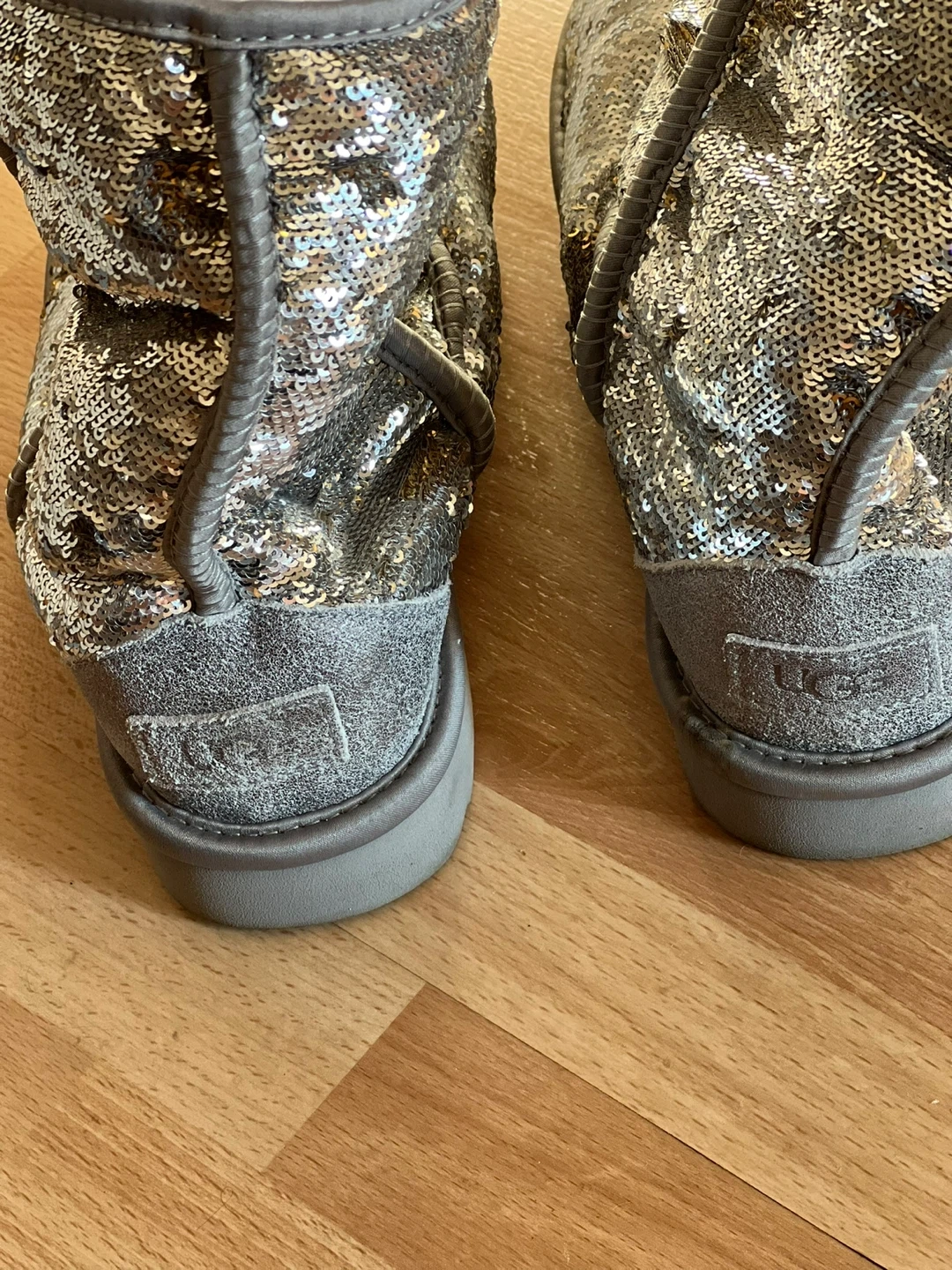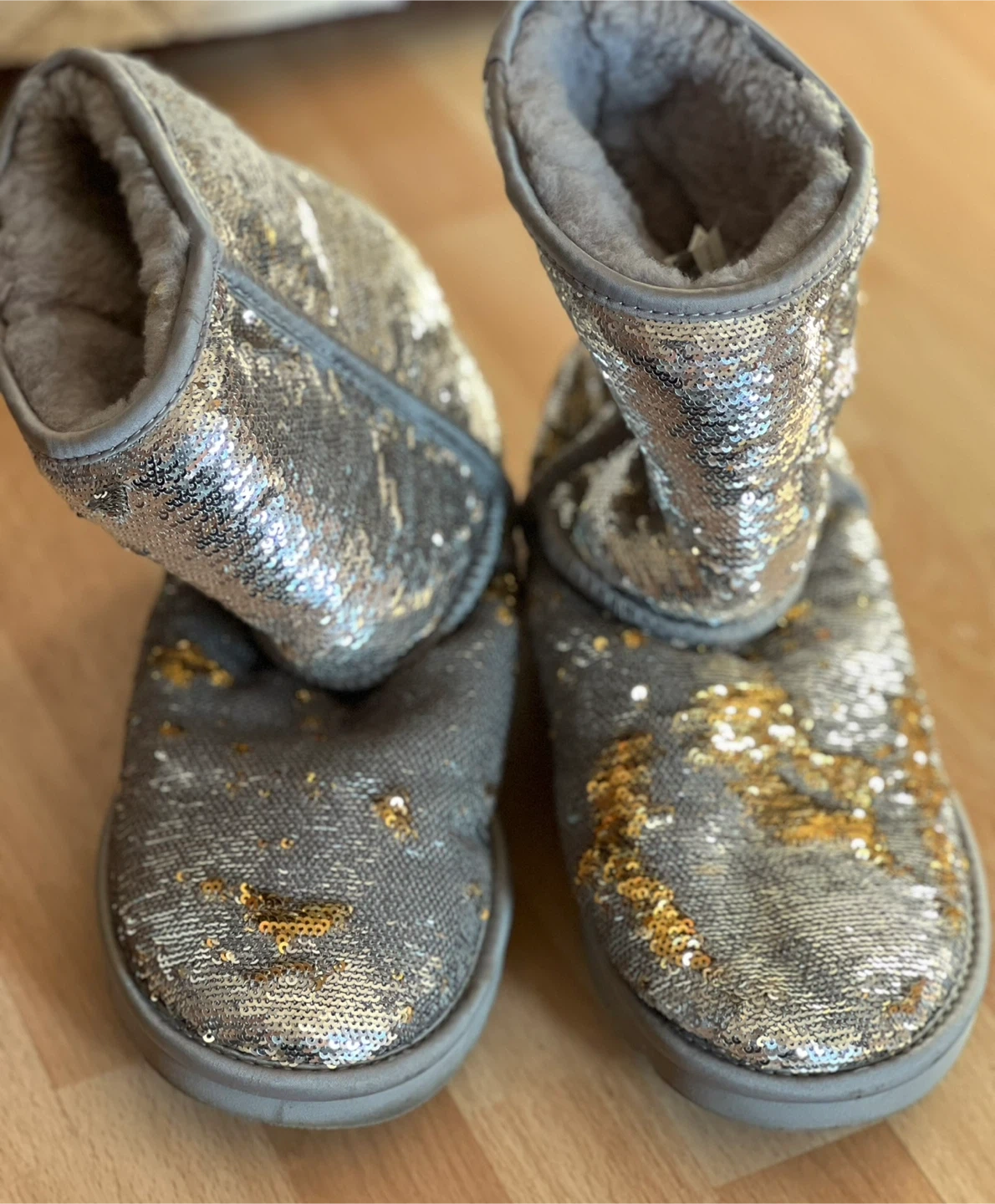 Selling a pair of UGG boots with sequins! They are in great condition and ready for a new home. The size is a women's 8 I bought at Nordstroms wore 2times I just have too many Uggs the sequins are gold or silver depending on what side is flipped