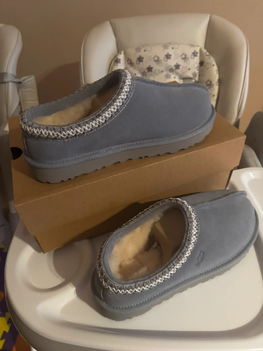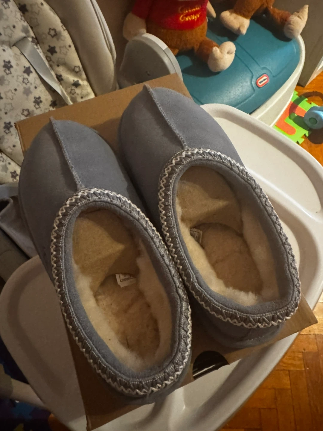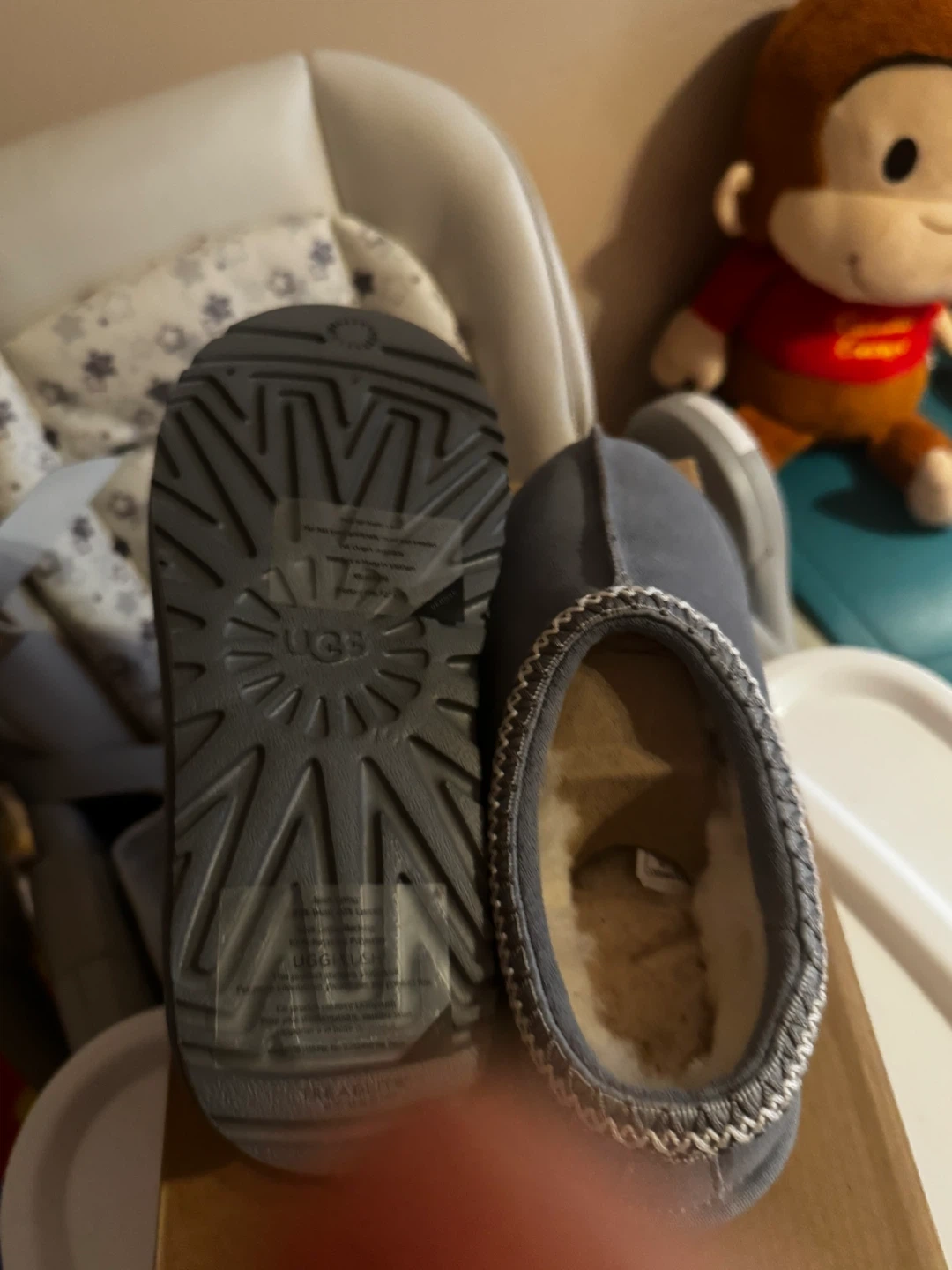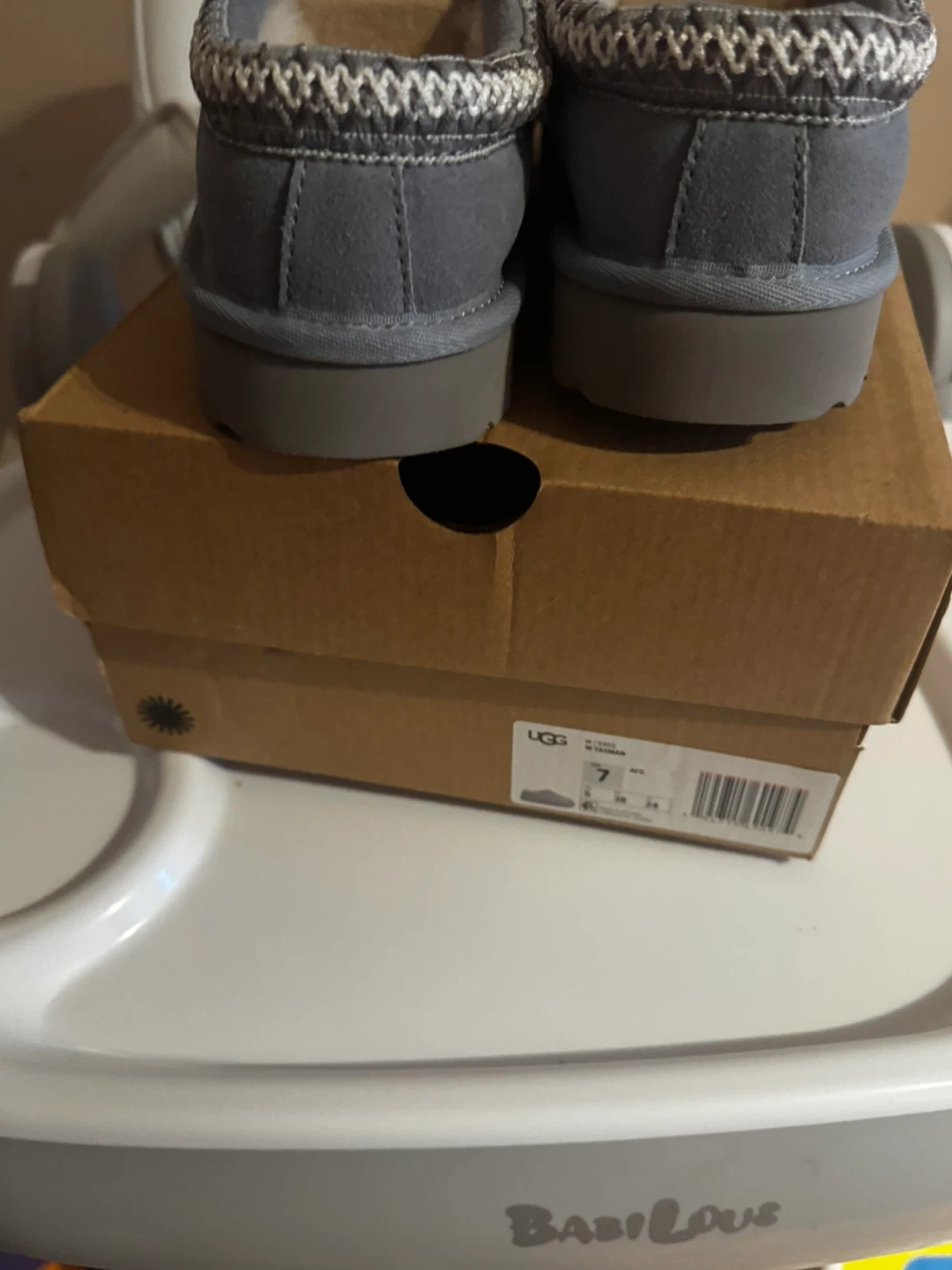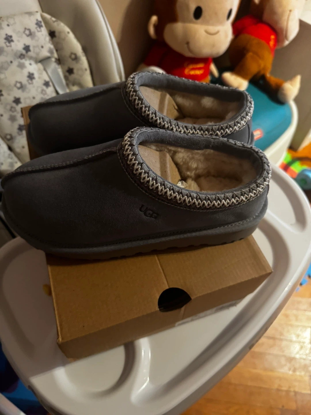 10Selling a pair of UGG Tasman slippers in size 7. They're a stylish grey color and come with the original box. Great for keeping your feet cozy! BRAND NEW WITH BOX
