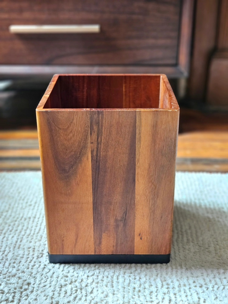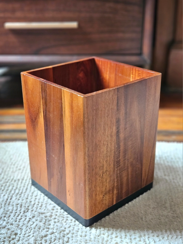 86This modern wood waste bin/ basket will beautifully fit in anywhere in your home - it's in excellent condition! I got it for around $50, and selling it at half price. It's only because my renovated room doesn't need a basket anymore. Come and get it. Cash and carry!