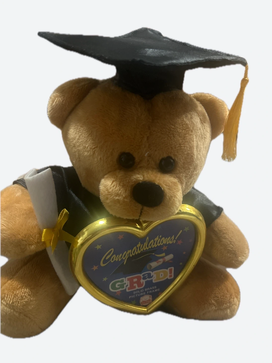 This adorable graduation bear comes with a heart-shaped, solid brass picture frame that says "Congratulations! GRAD!". It's a perfect gift to celebrate a graduation!